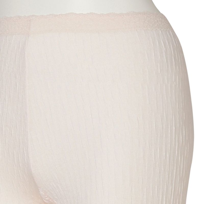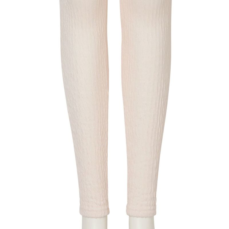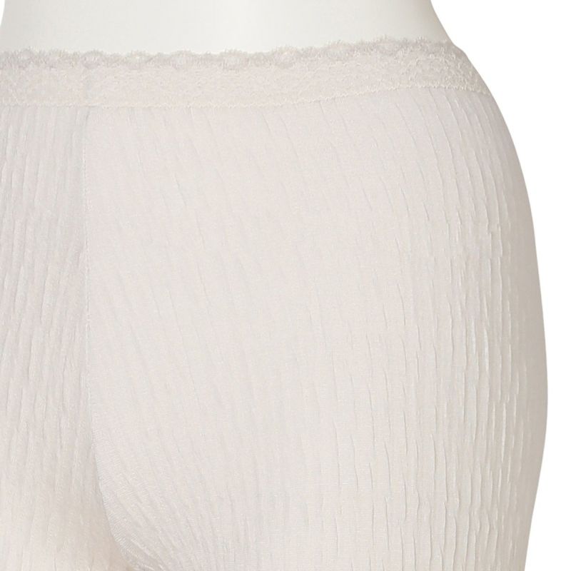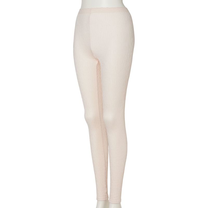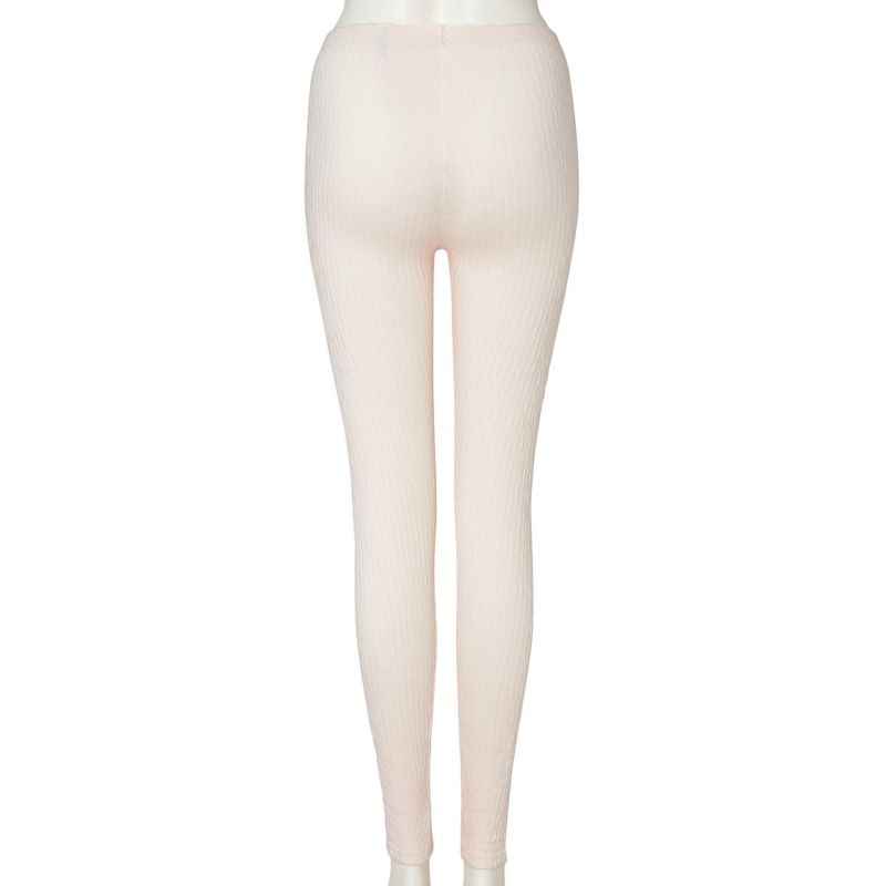 寒い季節に大活躍のロングカルソン。ポイントのウエストレースは生地の上に重ねているためレースが直接肌に当たらない優しい仕様に。お腹から足首まであたためる10分丈。