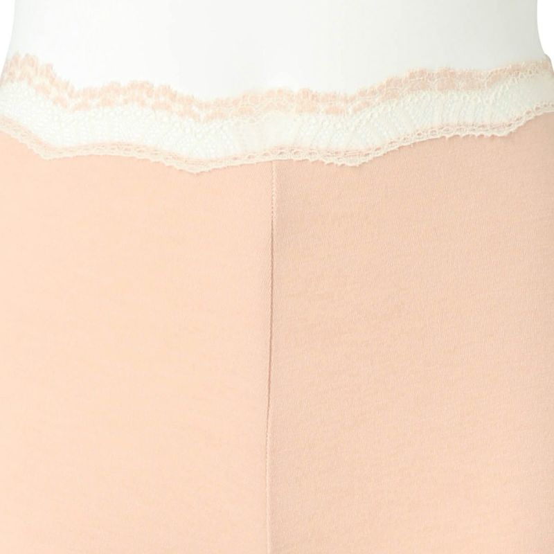 しっかり防寒する10分丈カルソン。ウエストはゴムではなくストレッチレースなので快適に履ける。マットな素材感でほどよい厚みなのでレギンスやスパッツとしても使いやすい。ブランドネーム・サイズは生地にプリントしてあるので肌ストレスの少ない仕様。