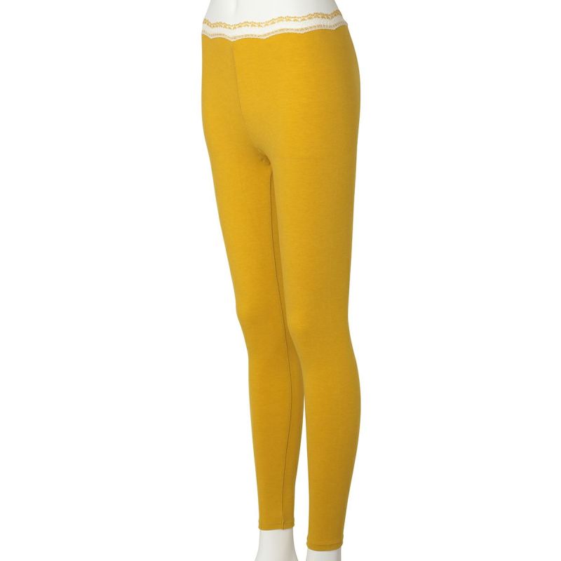 なめらかでしっとりした肌触りで毎年人気のキッドブルーの定番あったかインナーシリーズ。吸湿発熱性のあるサーモギアを使用。吸放湿性もあるためムレやべたつきはコントロール。静電気が発生しにくく衣類のまとわりつきを軽減。配色のスカラがかわいらしいレースを合わせ、品良く仕上げました。色はベーシックで着回しやすいカラーとこなれた差し色カラー。新色としてしゃれ感があるイエローと寒い時期も気分が明るくなるようなラベンダーが登場!