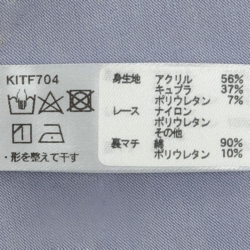 - 身生地 アクリル56% キュプラ37% ポリウレタン7% レース:ナイロン ポリウレタン その他 裏マチ 綿90% ポリウレタン10%