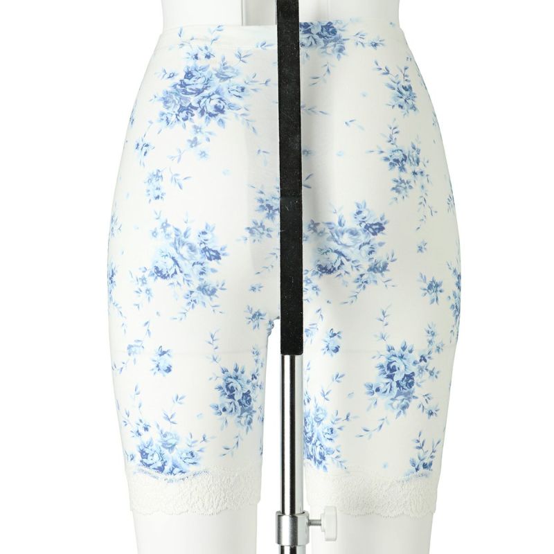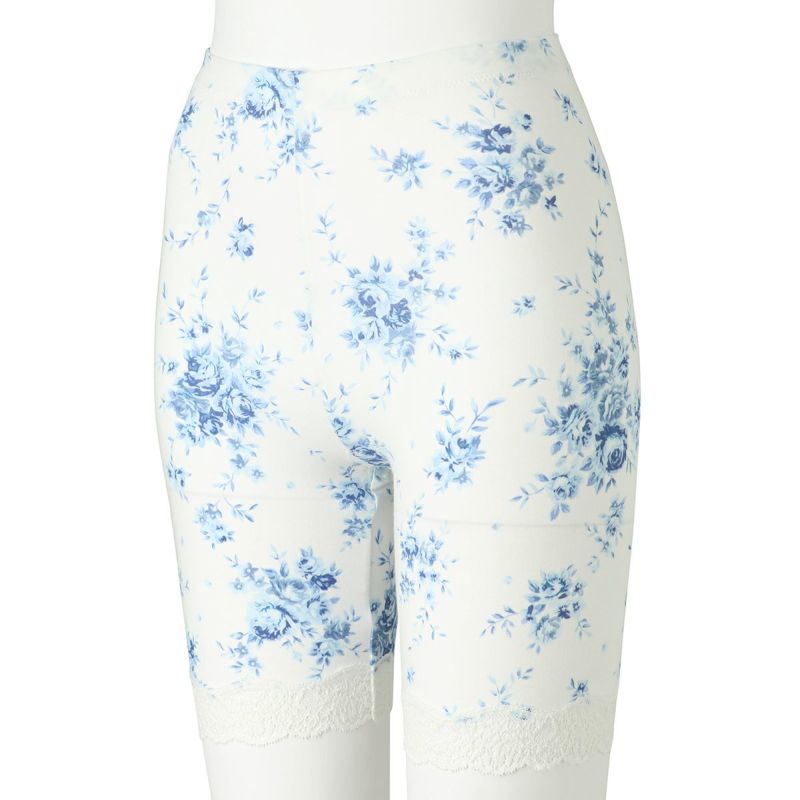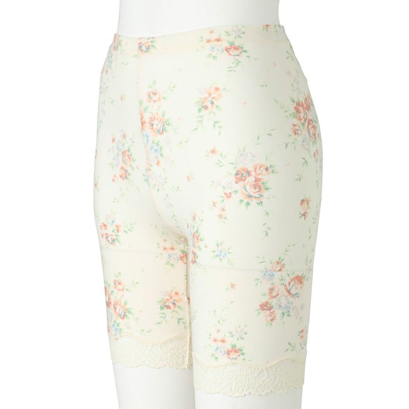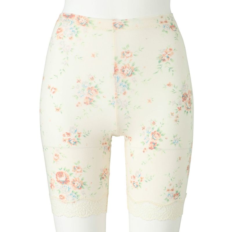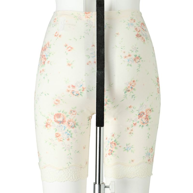 3分丈カルソンは、伸びがよいスーピマコットン地でほどよくフィット。裾はストレッチのある綿混レースでくいこみにくい。クロッチマチ付きなので1枚での着用も可能。ショーツに重ねて防寒対策にしたり、春夏はヒップや腿裏の汗止めに。
