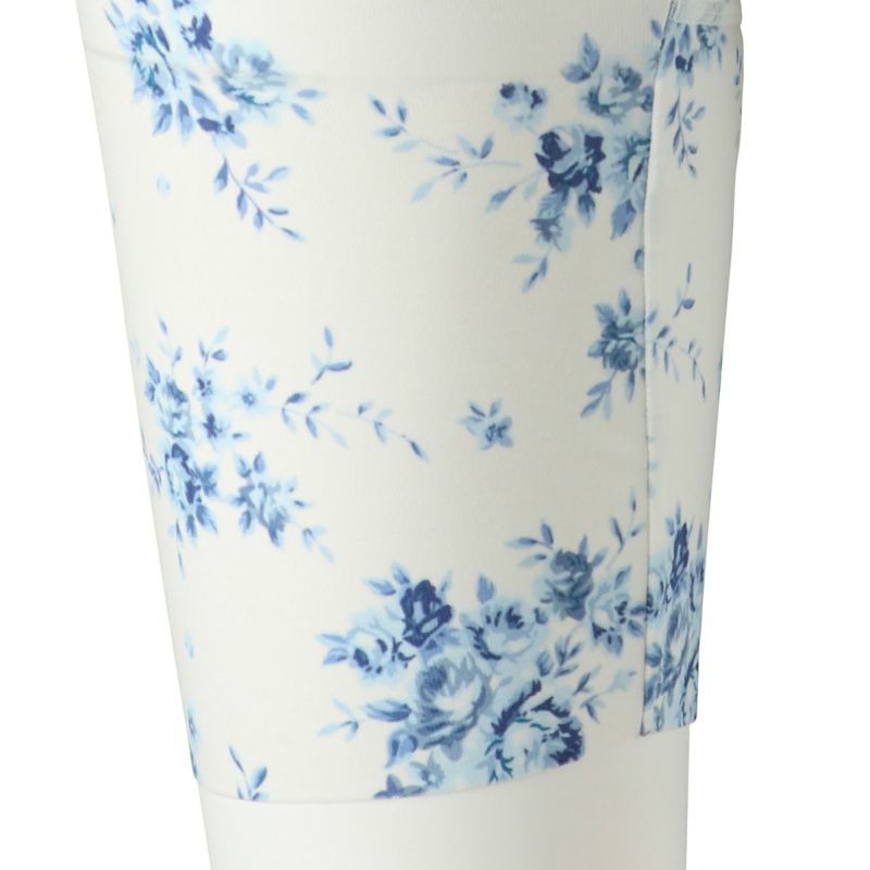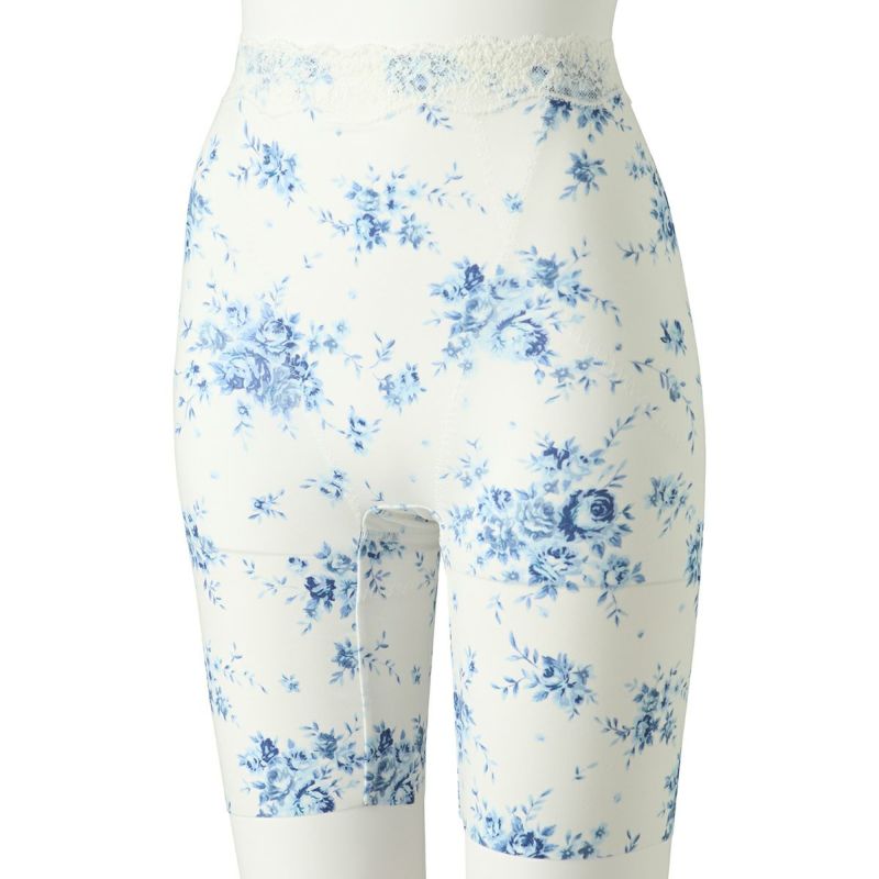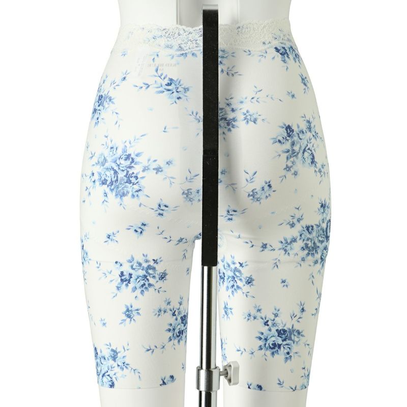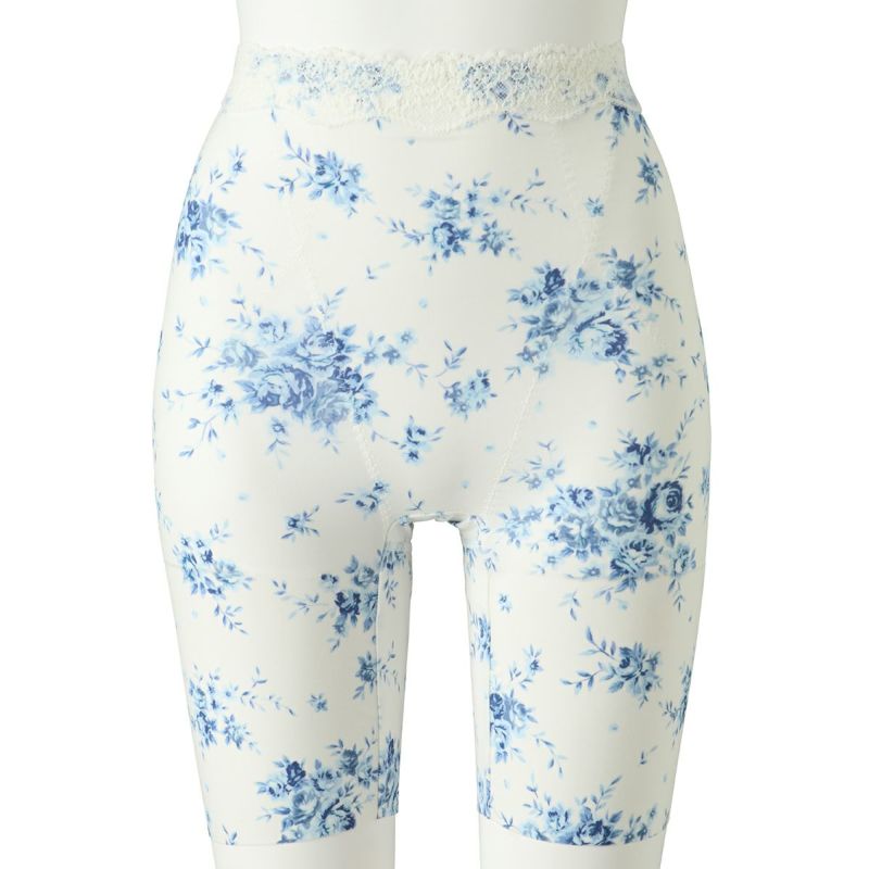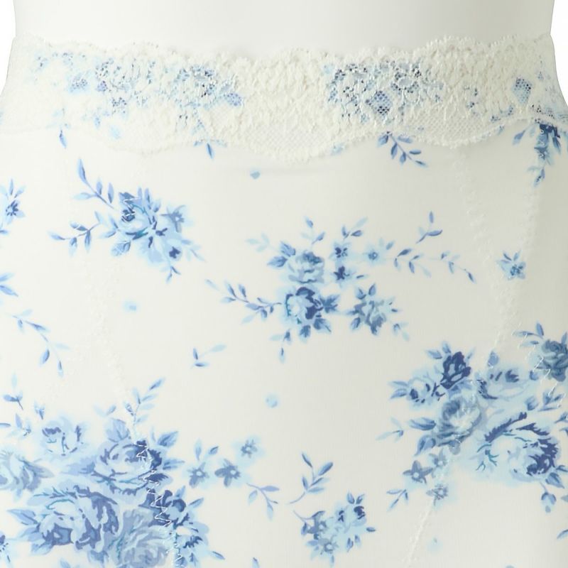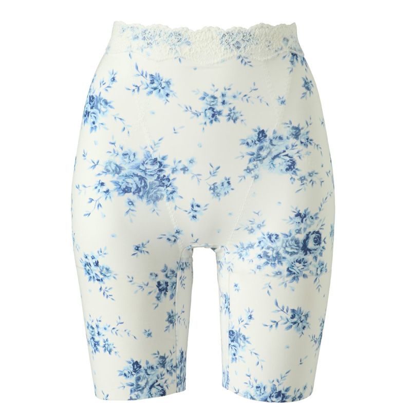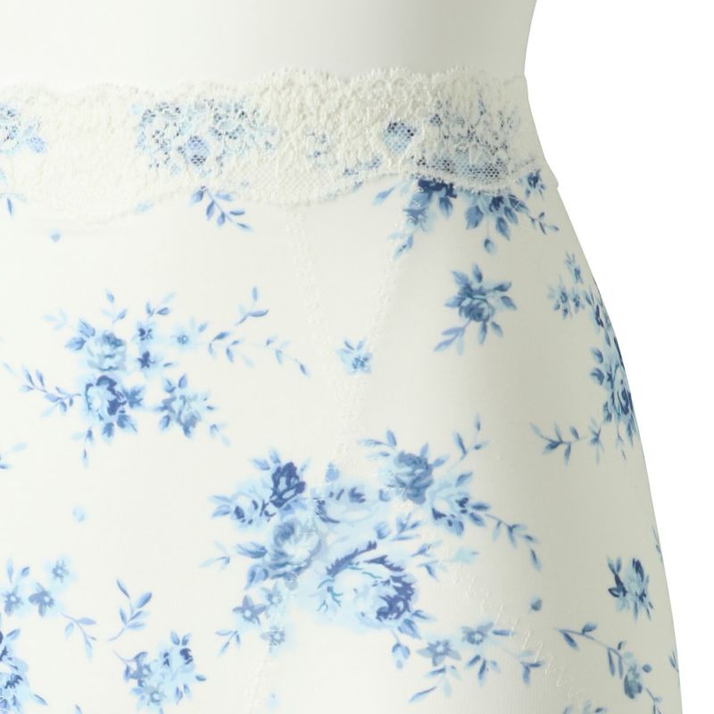肌側綿混でふちに縫い目のないヘム素材を活かしたシリーズ。肌との段差が出にくくなめらかなシルエットに。キッドブルーのオリジナルの華やかなブラッサムプリントを施しました。