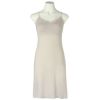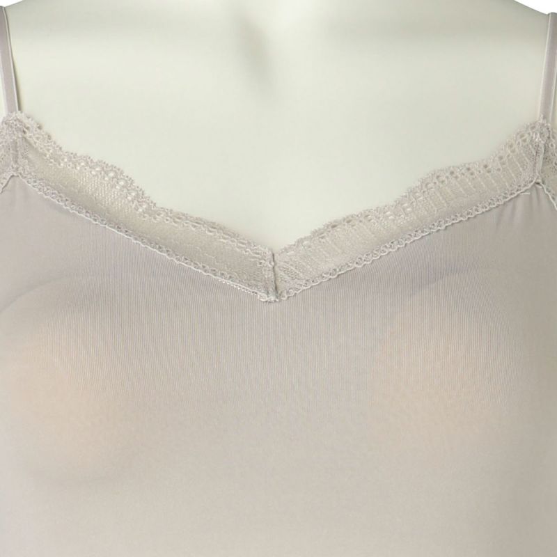 伸びの良いベンベルグベア天素材を活かしたNEWアイテムのカップ付きスリップ。ブラジャー、ペチコート無しで1枚で着れるためウエストのごろつきもなし。カップ裏地が前面のみのソフトな着用感で背中側の裏地のがないため段差になりにい。カップ肌側もベンベルグベア天。胸元、背中にはストライプ調のすっきりした柄ゆきの身生地同色の幅広レースをあしらいました。ストラップは華奢に見えるマカロニストラップで大人のフェミニンスタイルに。
