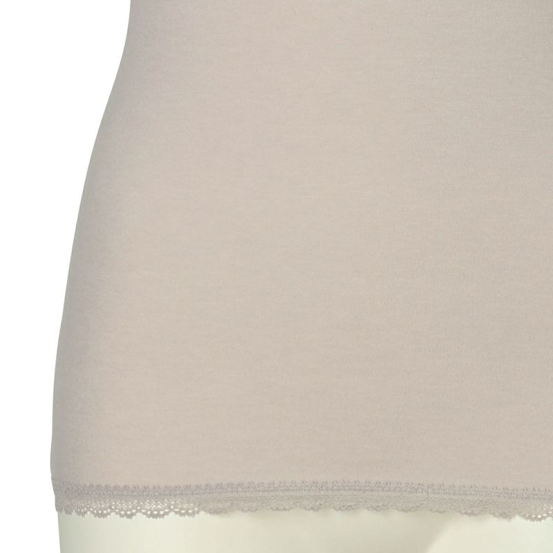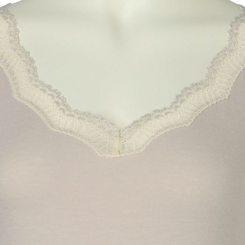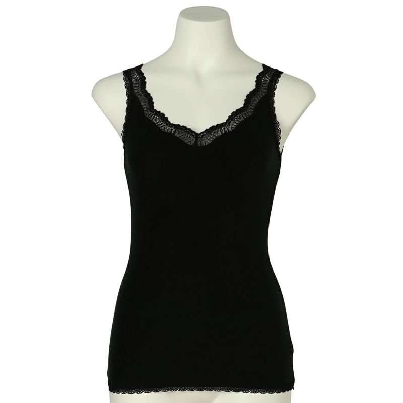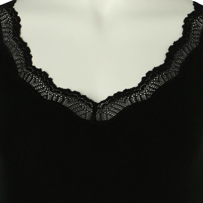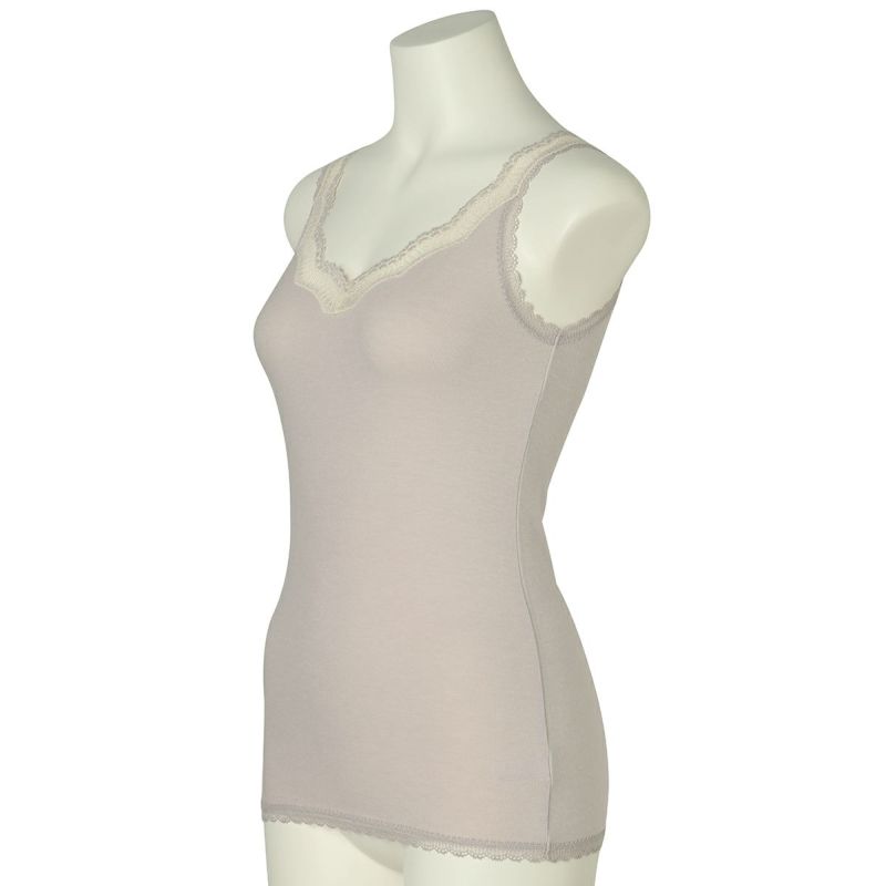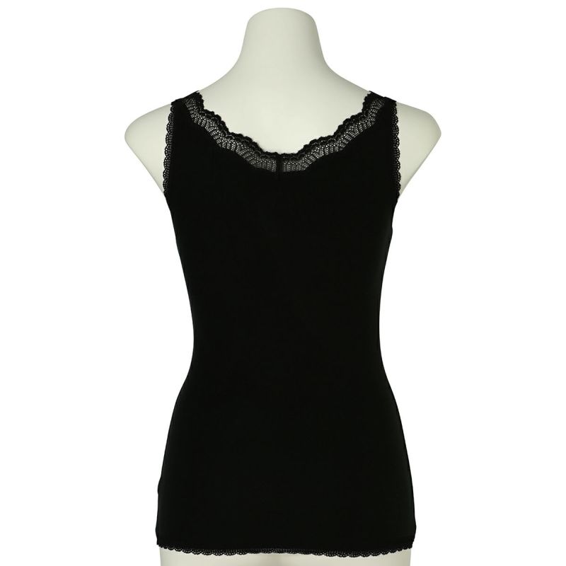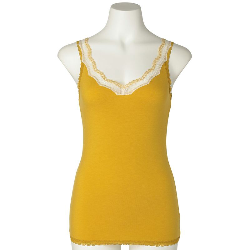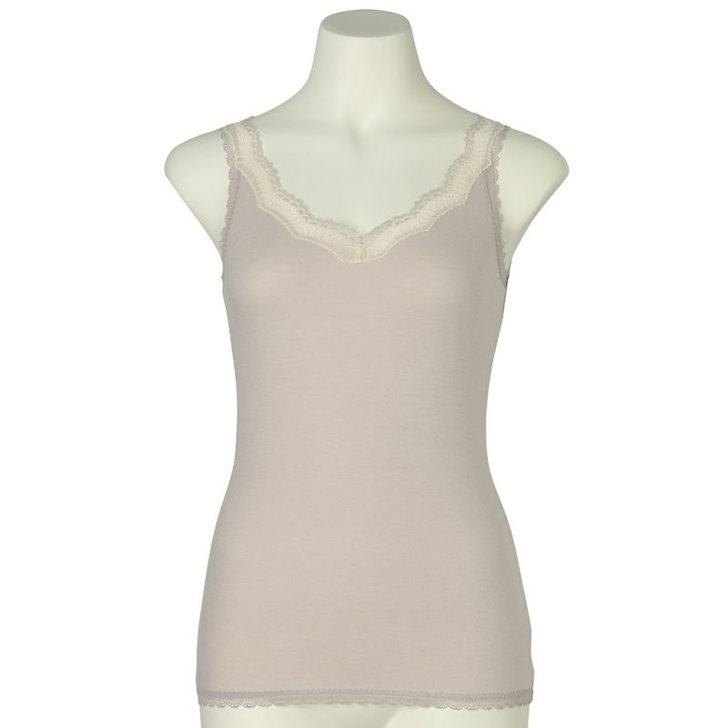 V開きのキャミソールは、フロントから背中までレースの肩紐が続く華やかなデザイン。かわいさプラスやや太め幅のレースでずれにくいところも嬉しいポイント。アジャスターもないのでごろつきなく快適な着心地。