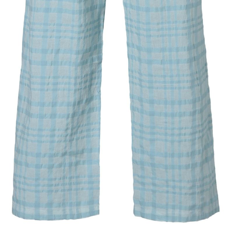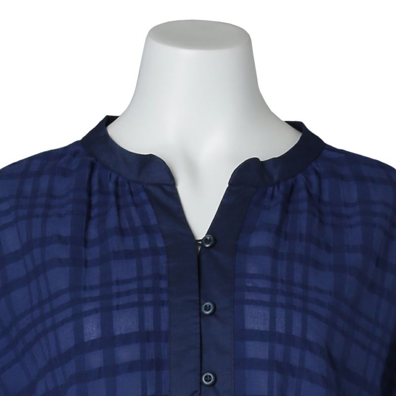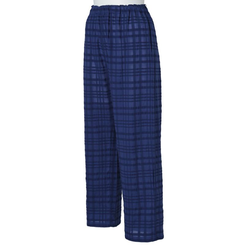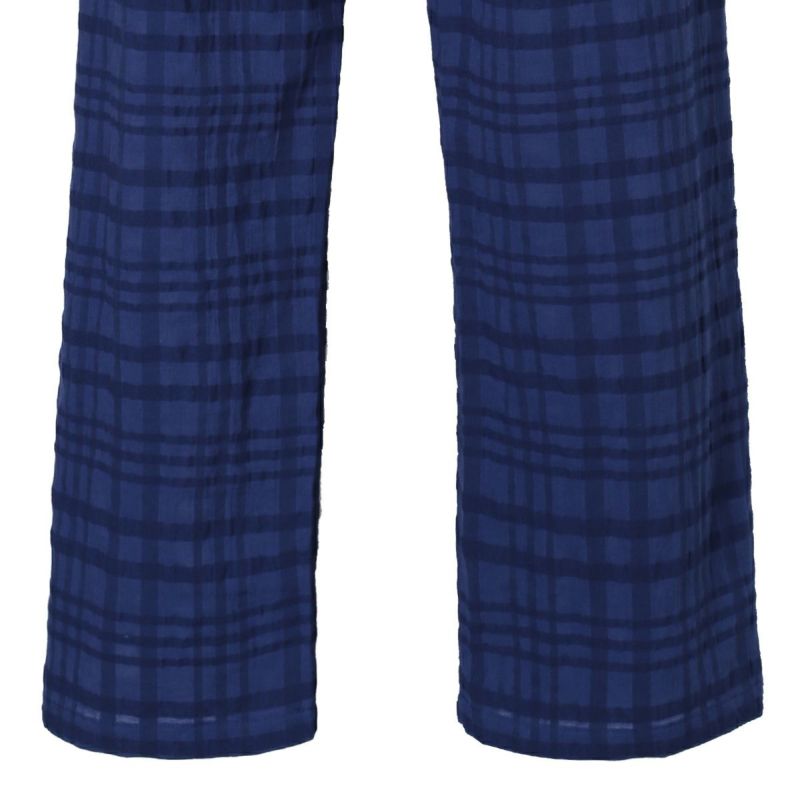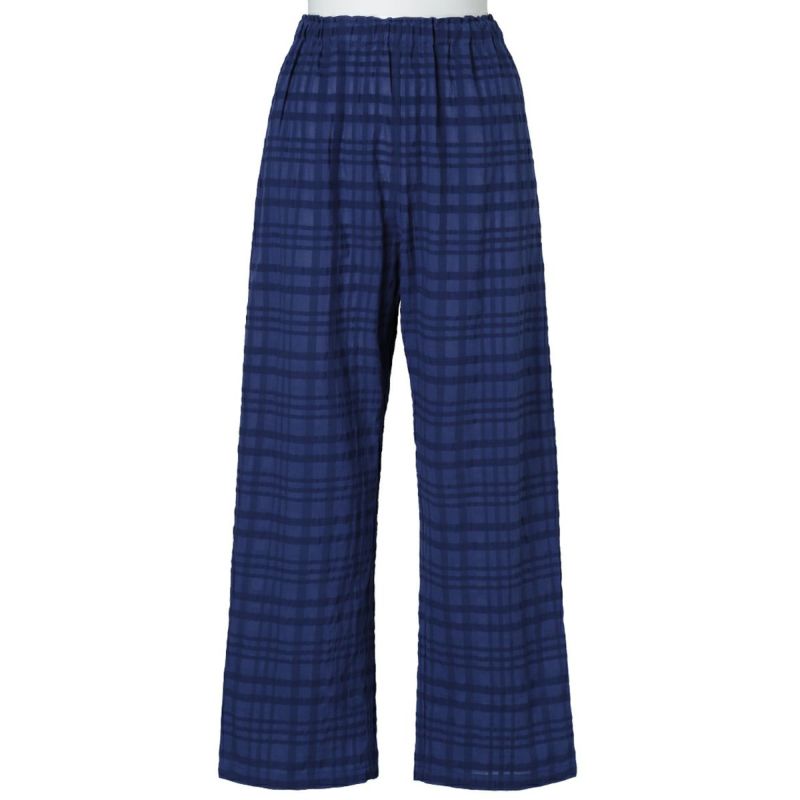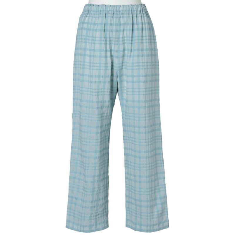 シアー感のある生地にナチュラルなチェック柄がよく映えるサッカー素材。番手の違う先染め糸を使用し、生地の表面に凹凸を出しているので涼しく快適に着用できる。 爽やかなサックスと落ち着いたネイビーの2色展開。