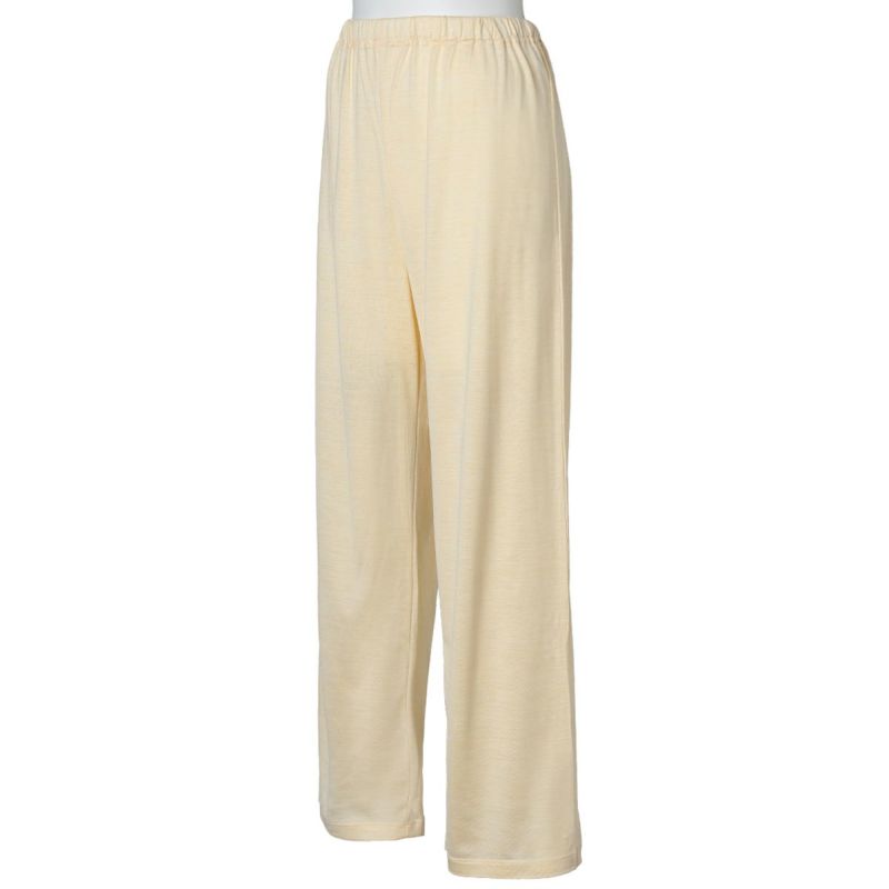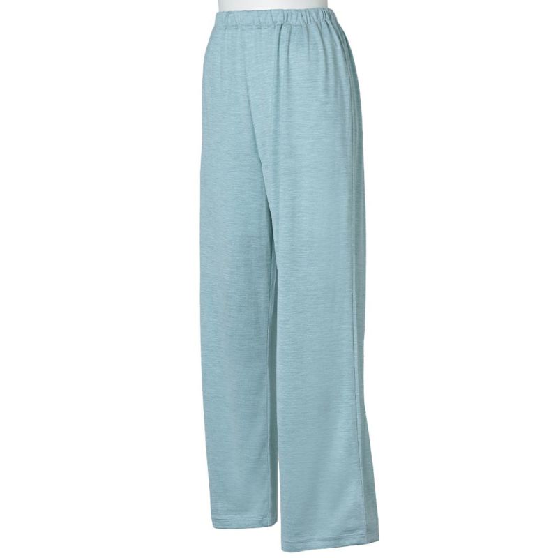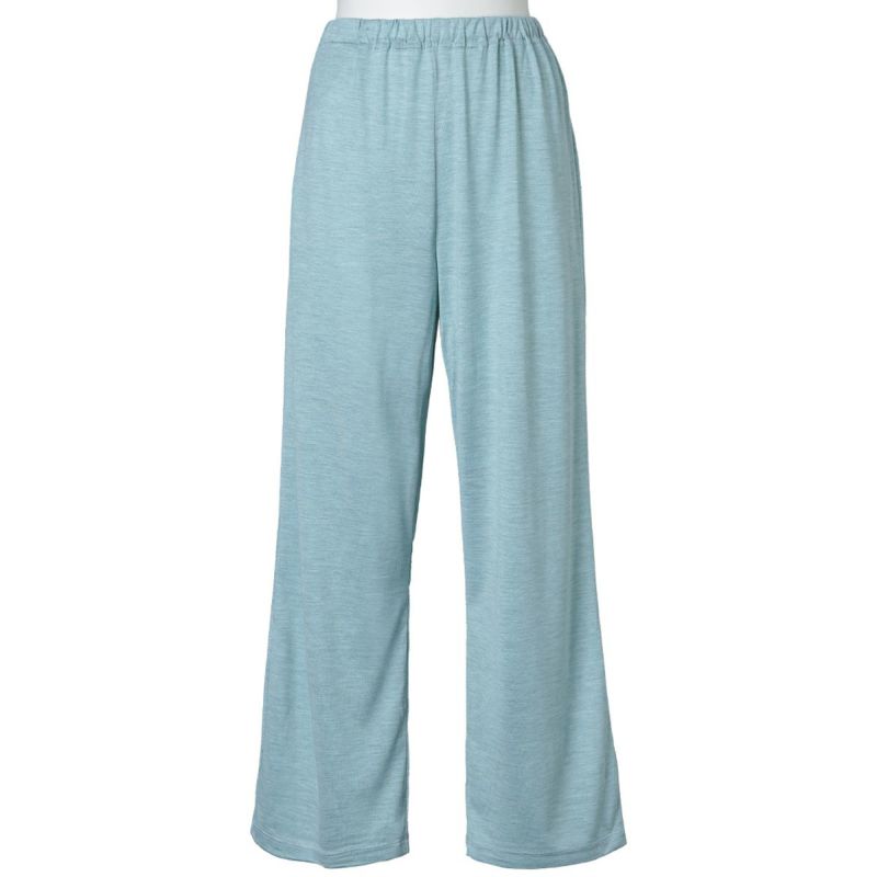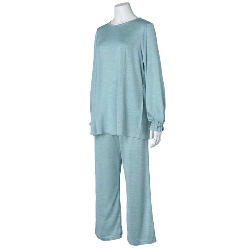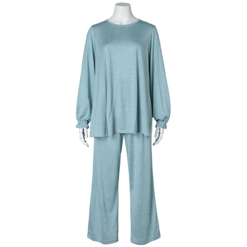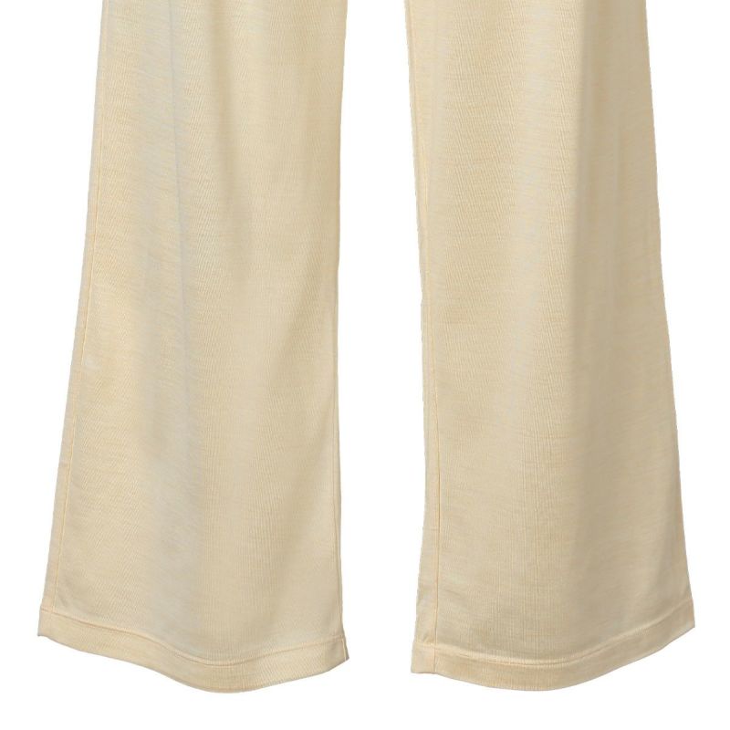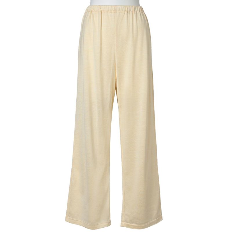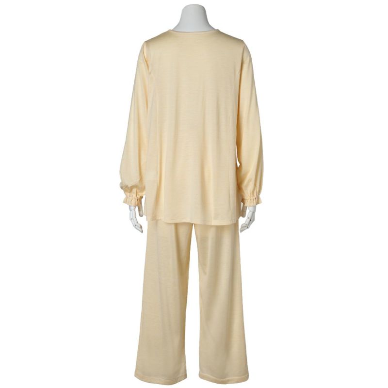 トップスはAラインでふわり広がるエレガントなシルエット。インゴムギャザーの袖口は、フリルのような見え感でさりげない可愛らしさをプラス。ボトムはスタンダードなストレートタイプ。