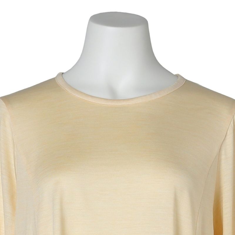24SSでも好評だったシルク100%のナイトウェアシリーズ。シーズンカラーのイエローとクリーンな印象のユーカリで登場。優美な光沢と滑らかな表面感、吸・放湿性に優れたシルク100%のリピーター多数の人気素材シリーズ。シレー加工による適度なハリとサテン風の光沢が特徴。透けにくく、シワになりにくいのが嬉しいポイントです。