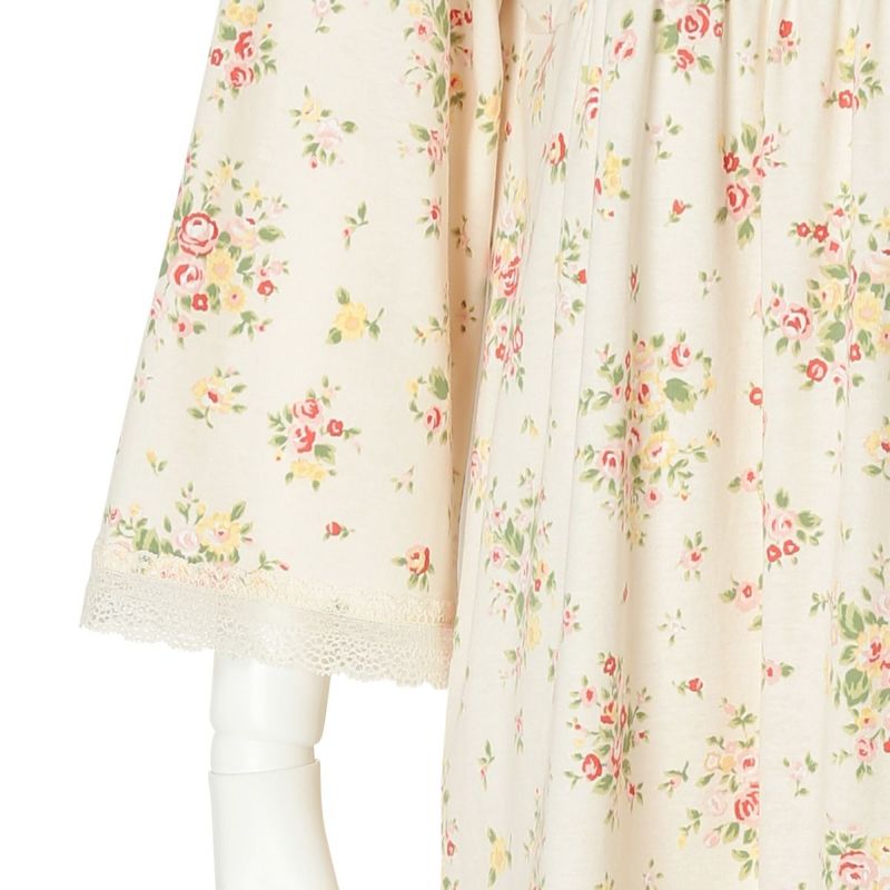 バラのブーケ総柄が華やかなシリーズ。ブランド45周年を迎え、原点回帰をテーマに2001年の人気柄を復刻。かわいらしい雰囲気の復刻カラーのアイボリーと、落ち着いたサックスの2色展開。生地表面に「リキッドコットン加工」を施しソフトな風合いと滑らかさ、微光感もあり上質感ただようシリーズです。