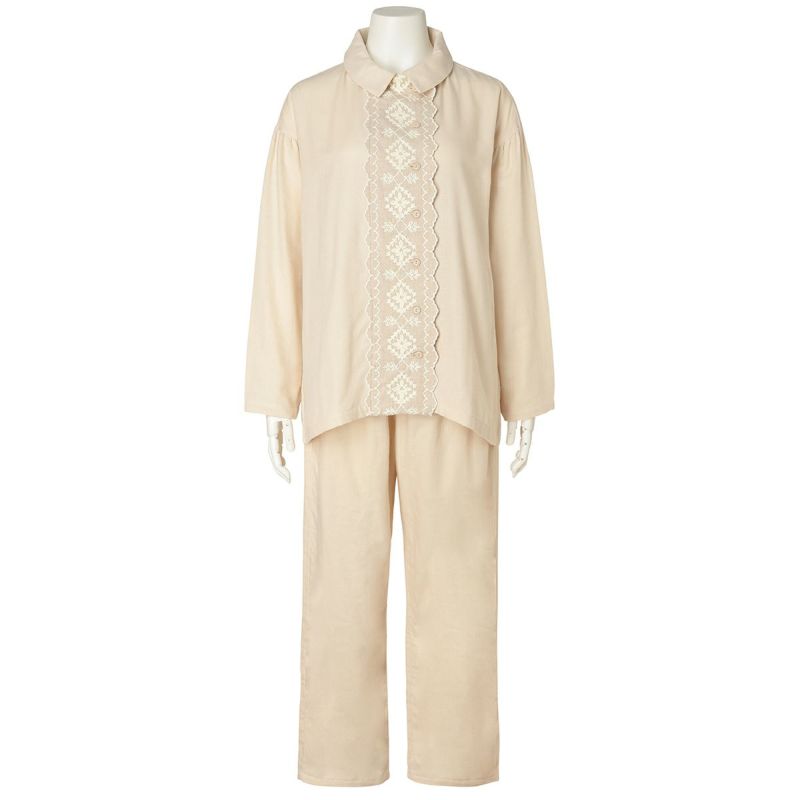 トップスは少し裾へ広がりのあるリラックスしたシルエット。パンツはウエスト紐付き。「24フリースエンブ」シリーズと刺繍モチーフが同じイメージなので、コーディネイトもおすすめ。