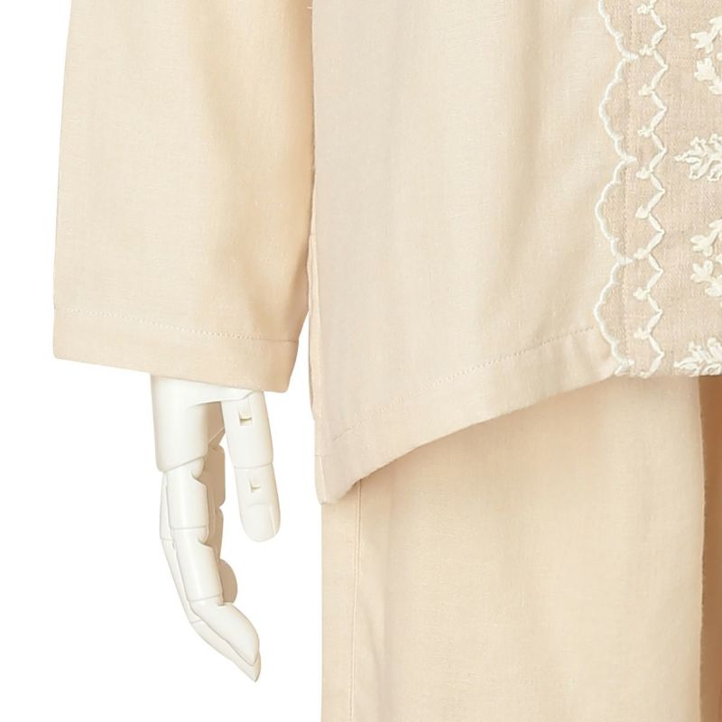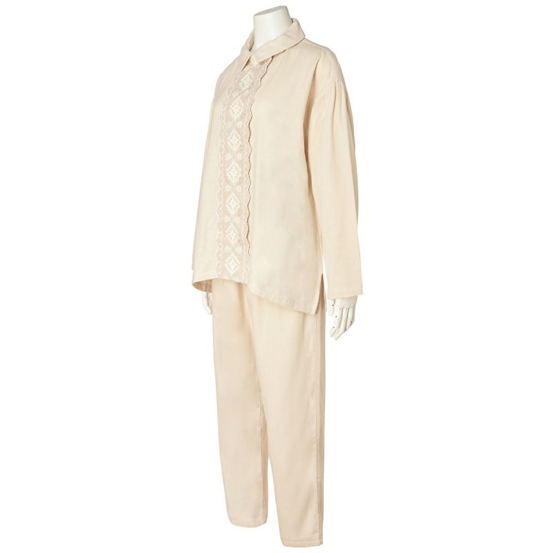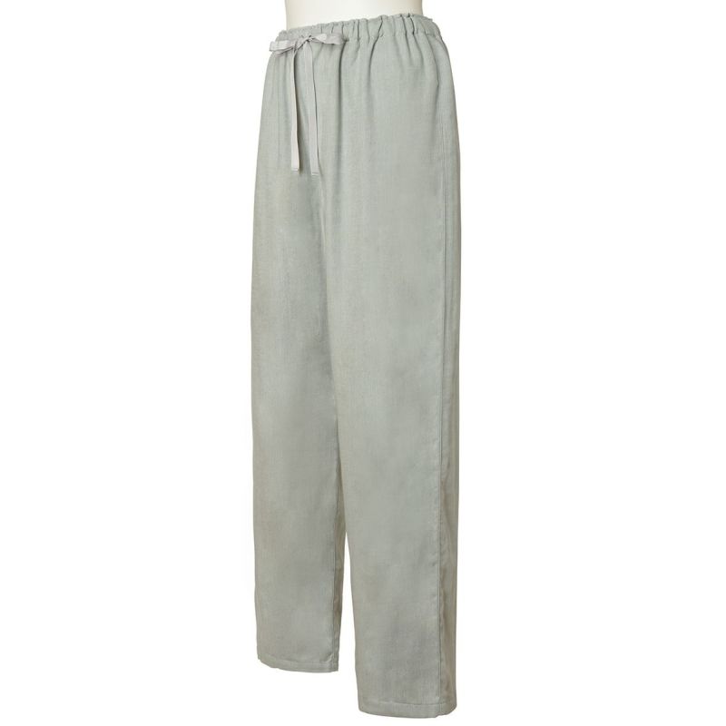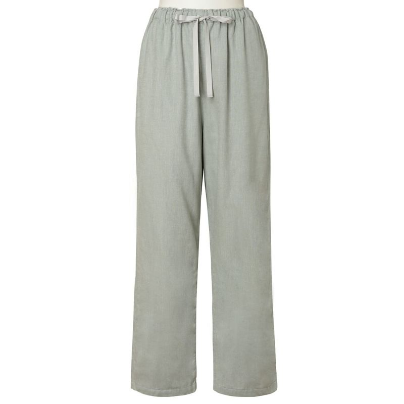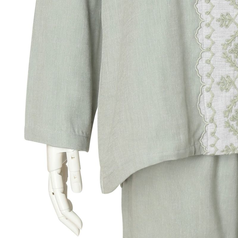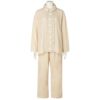 オリジナルのコード刺しゅうのスカラップレースがかわいらしく手の混んだナイトウエアシリーズ。両面に起毛をかけ、あたたかみのあるWガーゼ素材。椿オイル加工をほどこし、柔らかい風合いのシャンブレーWガーゼ。ナチュラルな素材感を活かしたアイボリーと表情のあるペパーミントの2色展開。