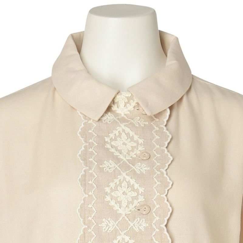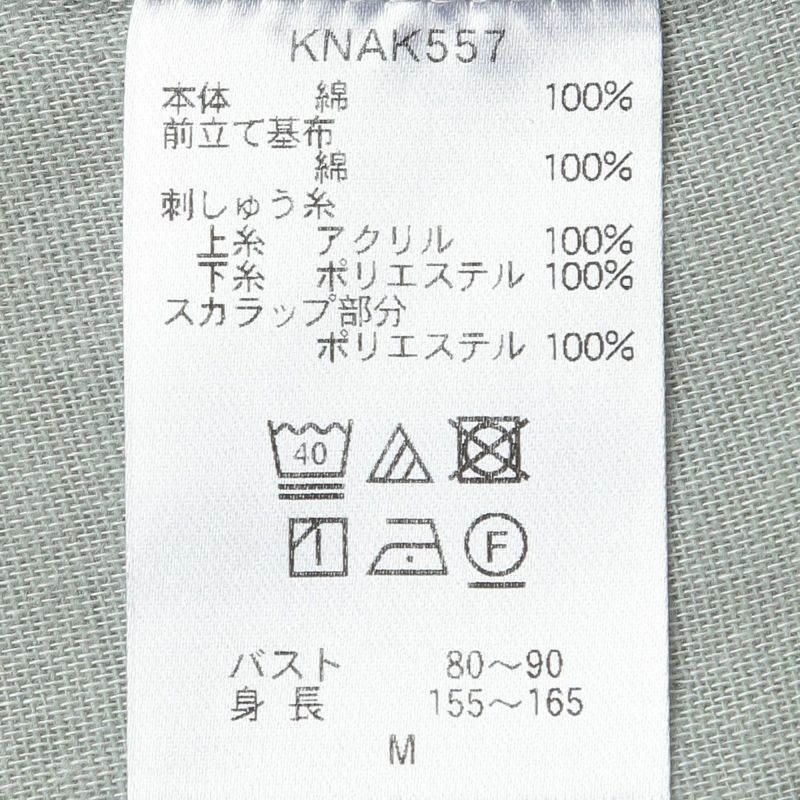 - 本体:綿100% 前立て基布 綿100% 刺しゅう糸 上糸アクリル100% 下糸ポリエステル100% スカラップ部分 ポリエステル100%