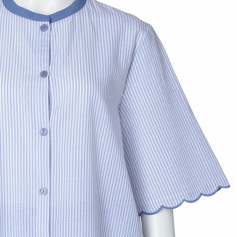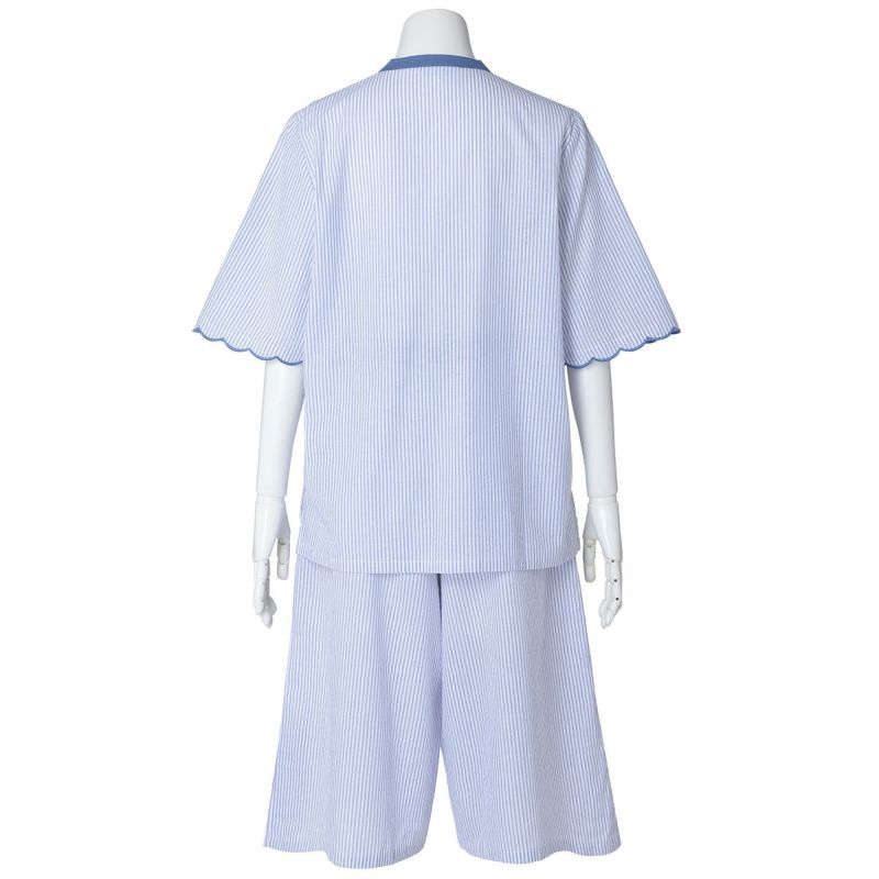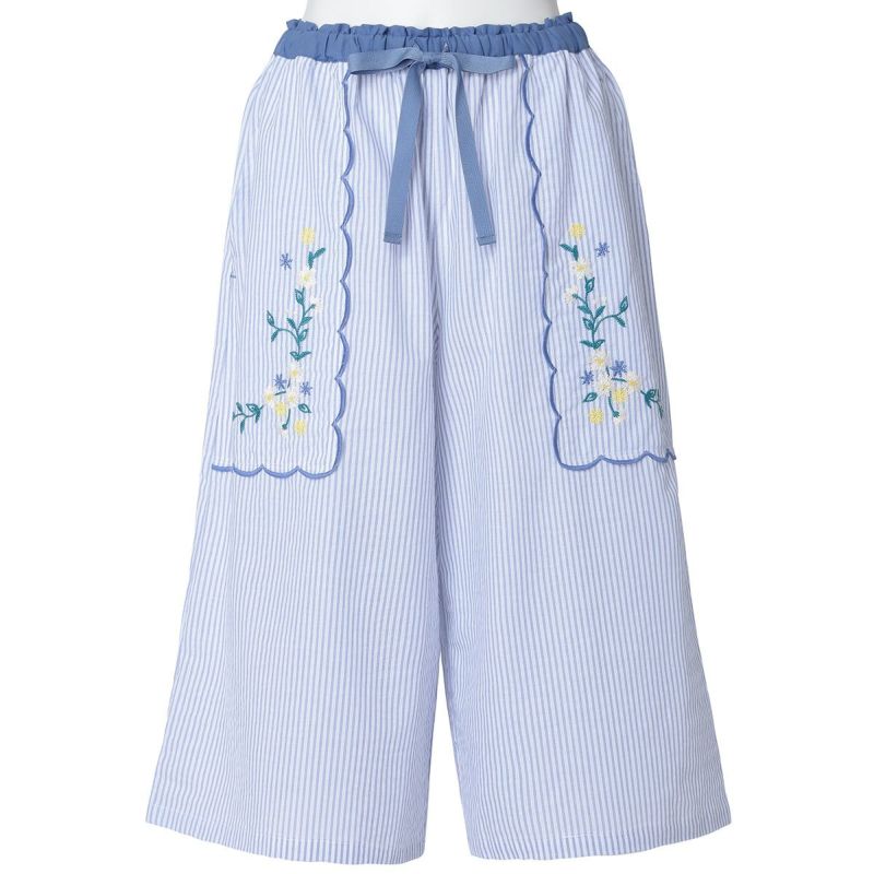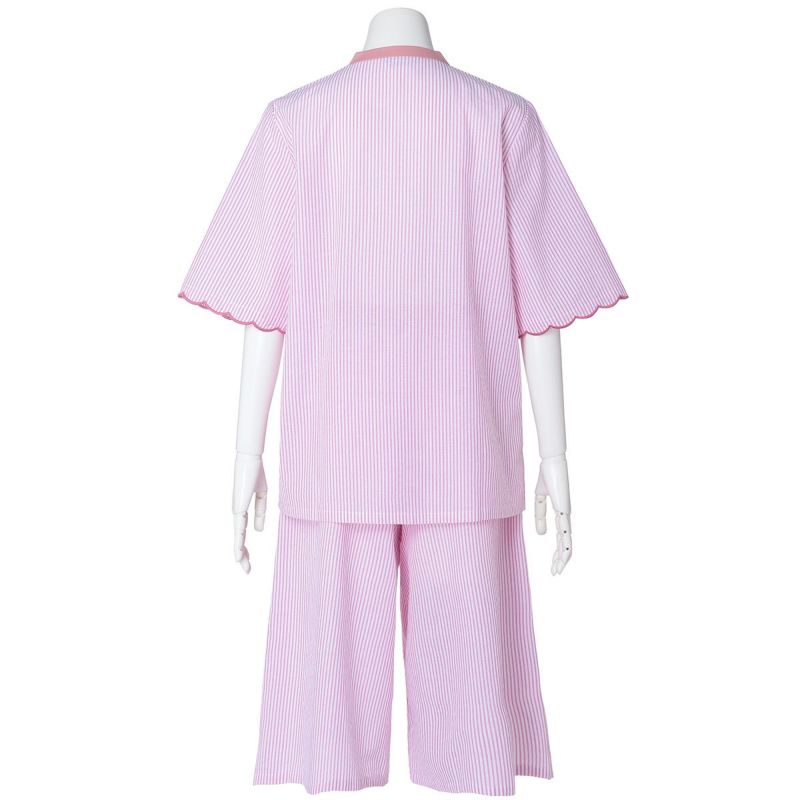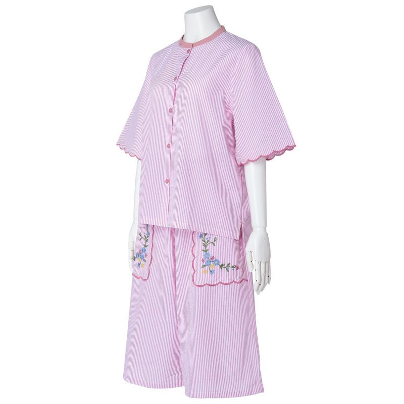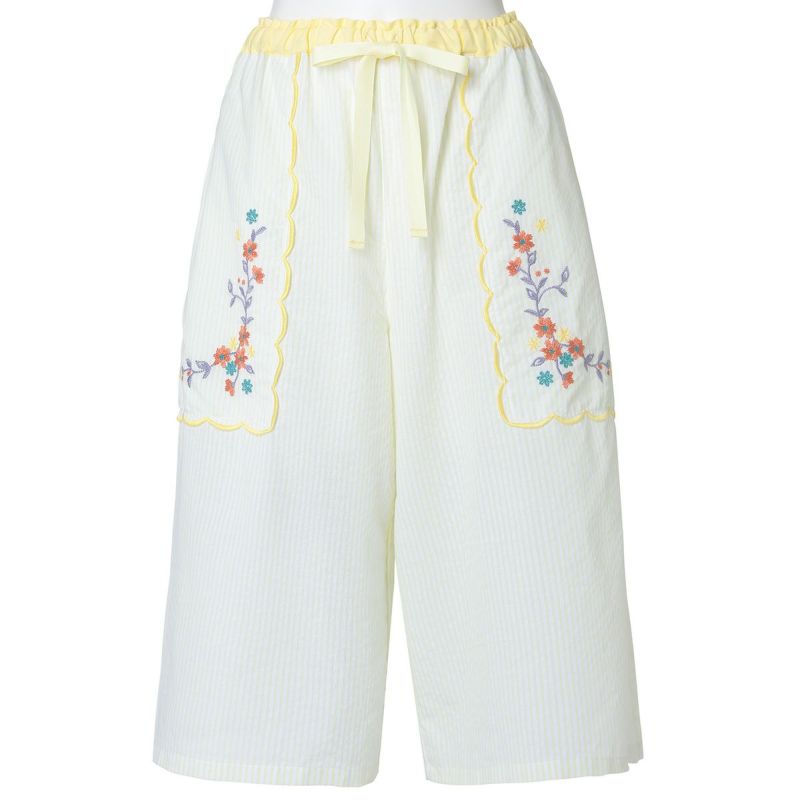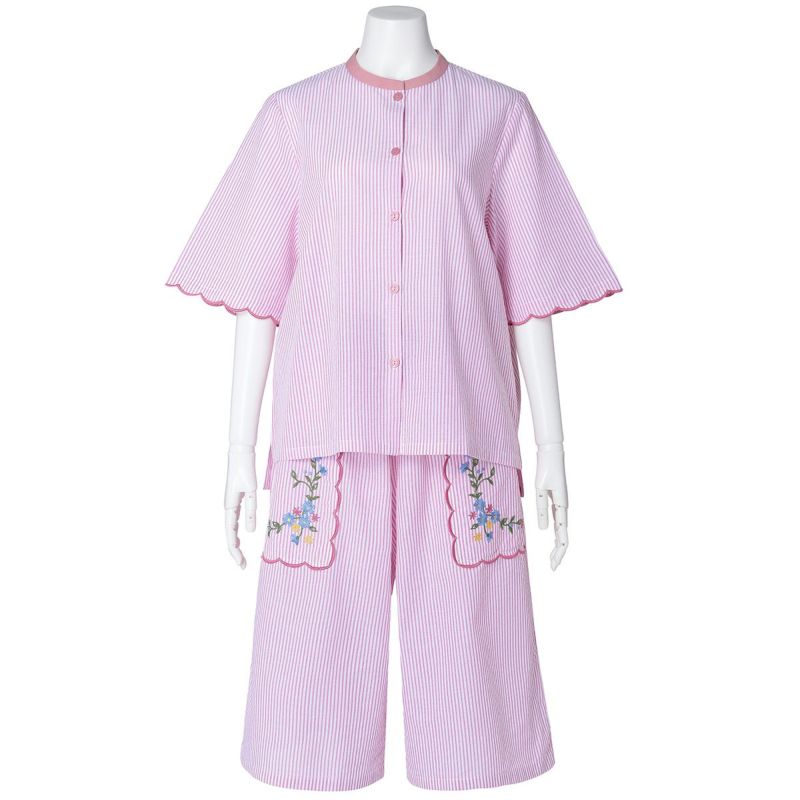 5分袖パジャマは、スカラップヘムで仕立てた袖と刺しゅうの入ったポケットがデザインポイント◎おうち時間もおしゃれに過ごせること間違いなし!6分丈ボトムスで足さばきも良い。機能性&デザイン性を兼ね備えたアイテムです。