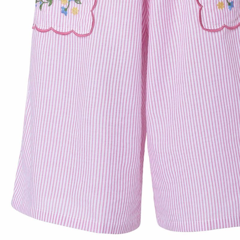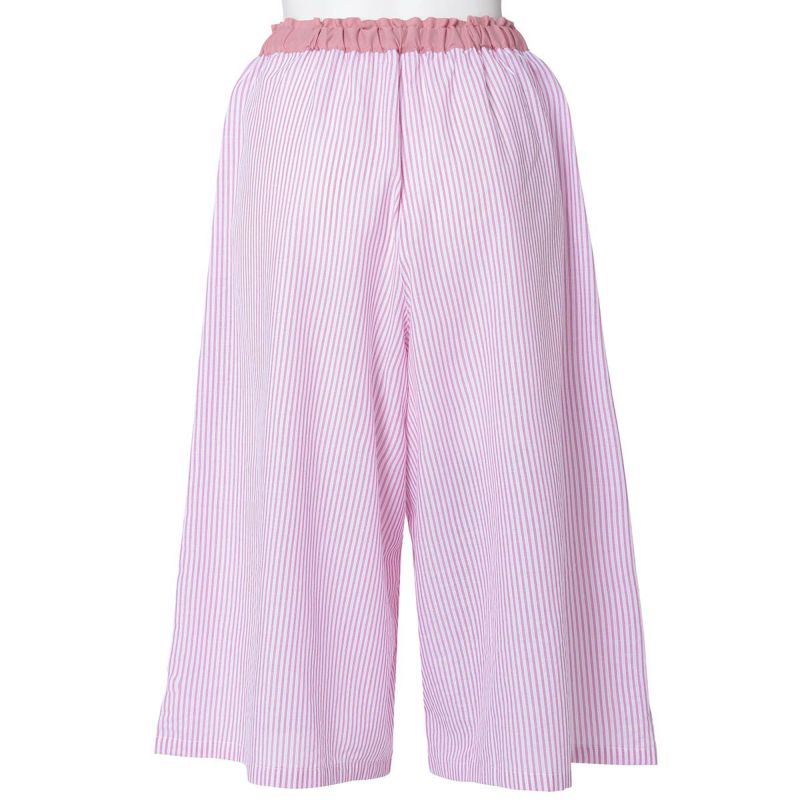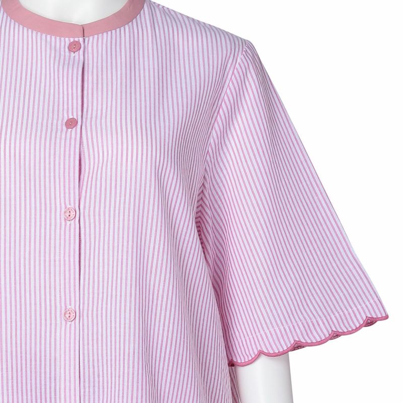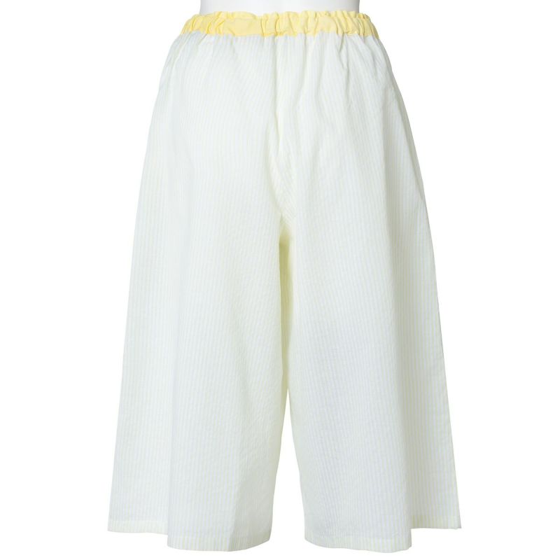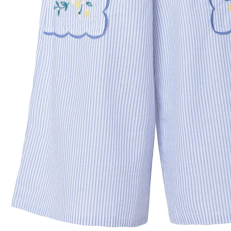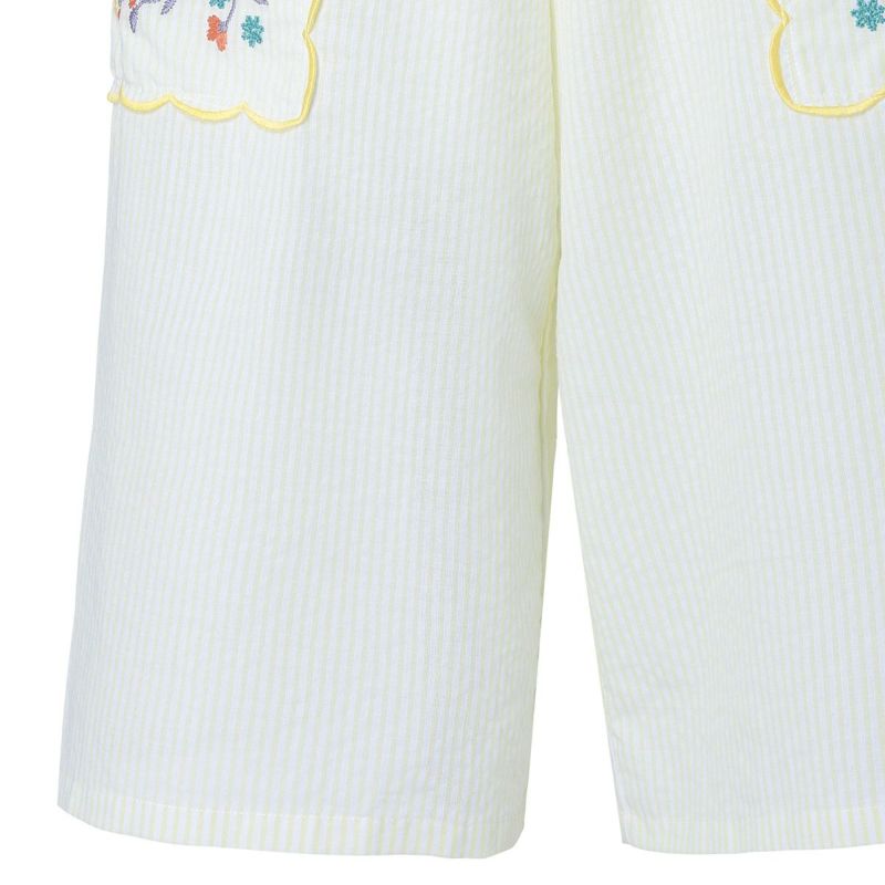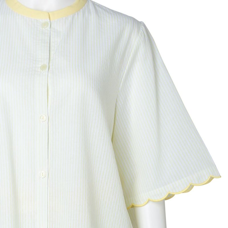 番手の太い花刺しゅうやスカラップヘムのハンカチーフのようなモチーフなど、こだわりのディティールを詰め込んだ可愛らしいナイトウェア。ストライプ柄がよりスタイリッシュな印象をプラスします。元気を与えるビタミンカラーの3色展開。