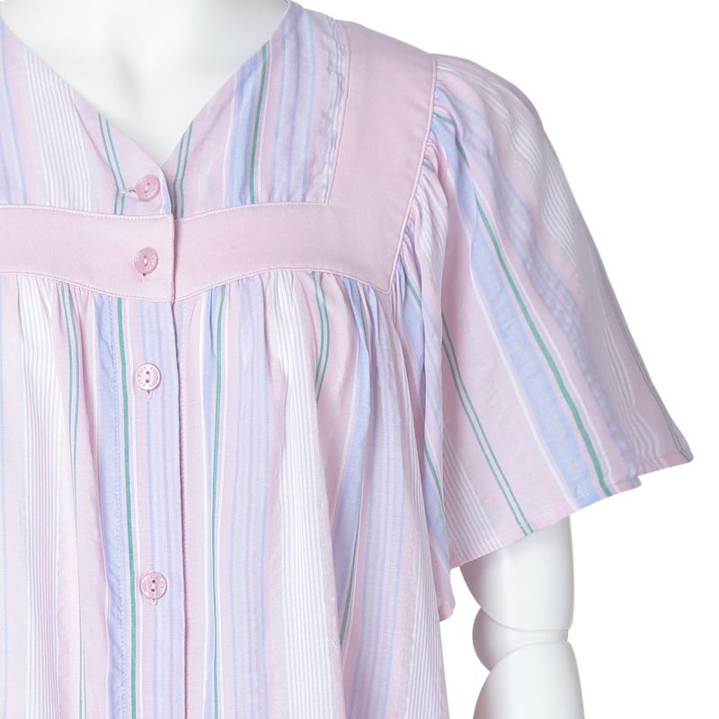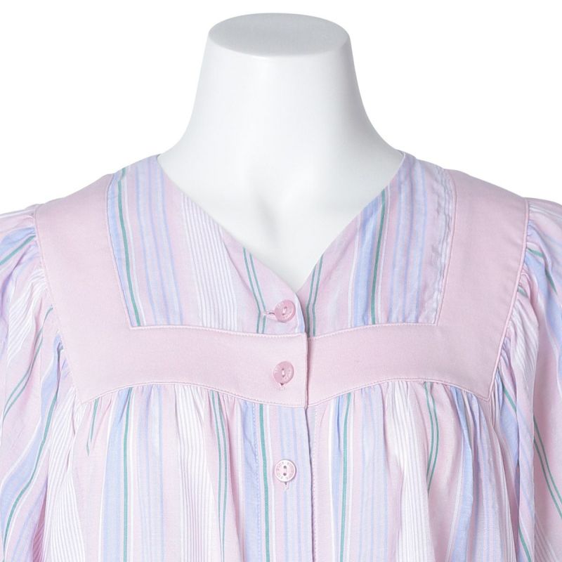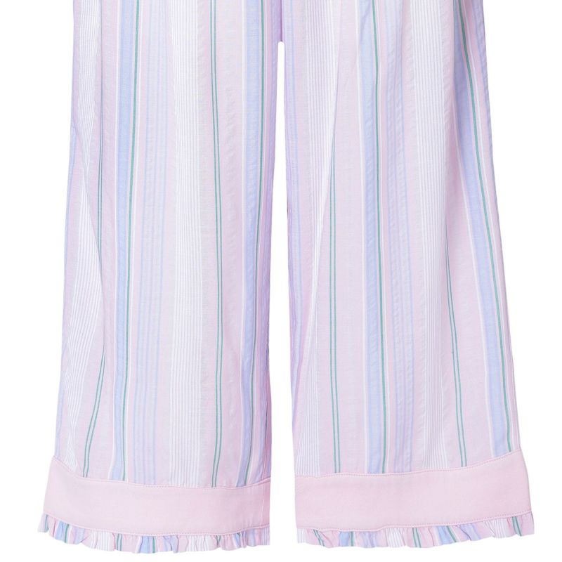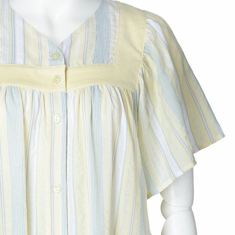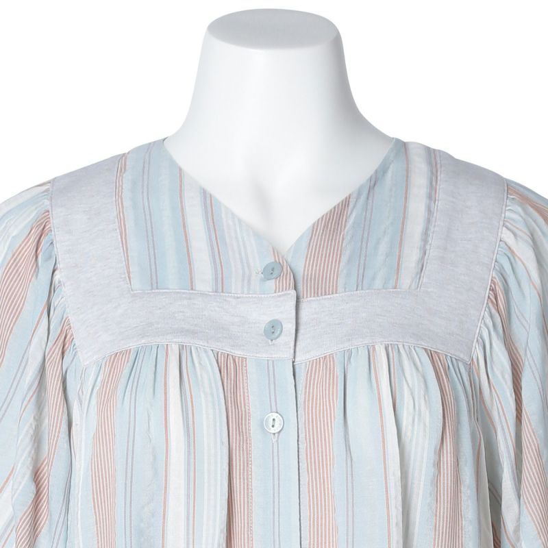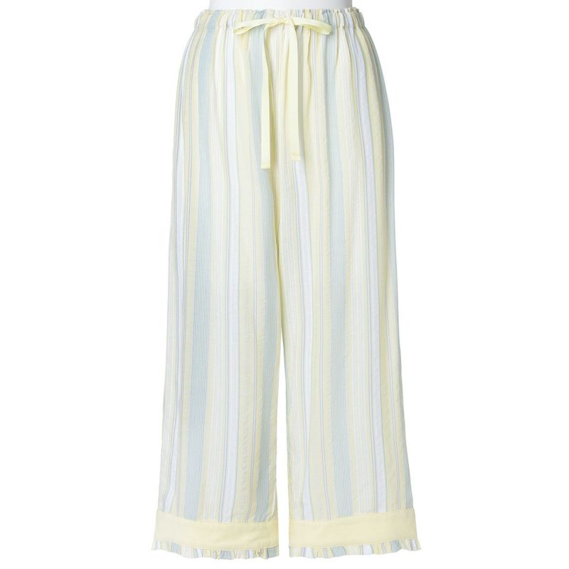 生地に凹凸を出したさらっと肌離れが良く春夏にちょうどいい素材のナイトウェアシリーズ。自然な落ち感が美しい。縦ラインを強調するオリジナルのストライプ柄は細見え効果も嬉しい。