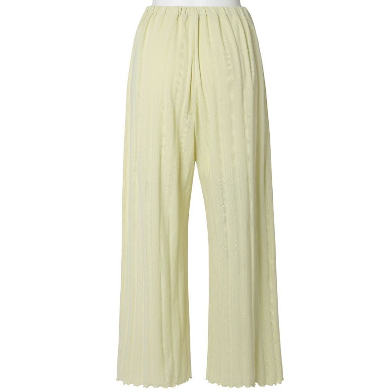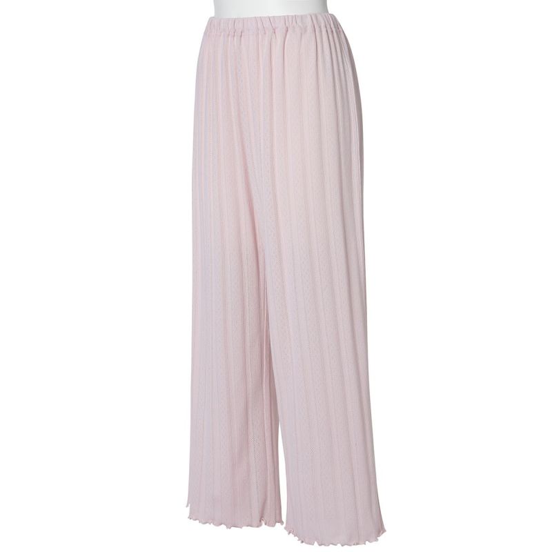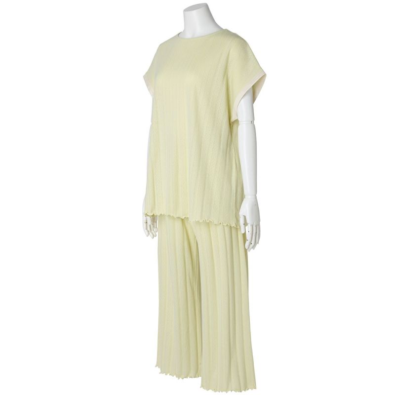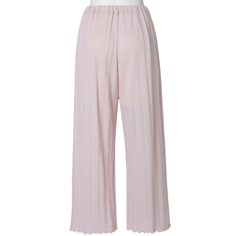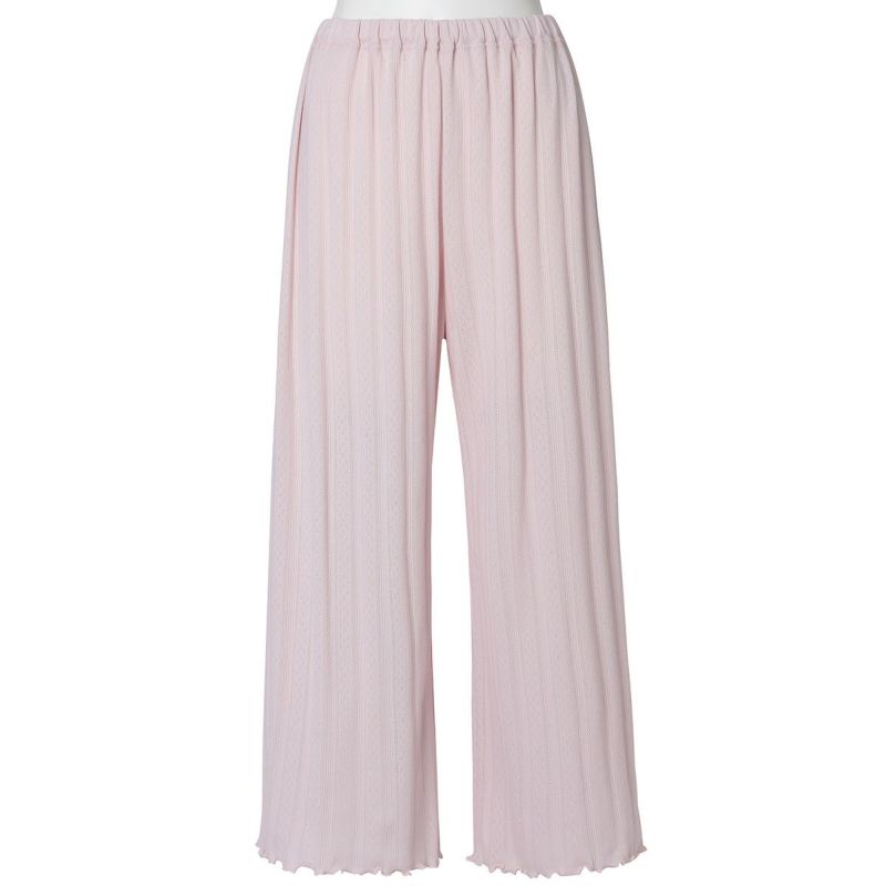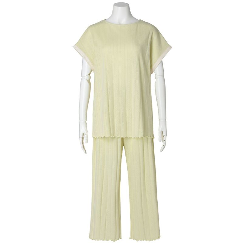 針抜きパターンメッシュ素材を採用し、夏にぴったりの通気性に優れた涼やかな着心地。綿100%の柔らかな風合いでリラックスタイムを心地よく過ごせるシリーズ。