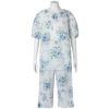 肌離れのいい素材を活かしたパジャマ。トップスはゆとりのあるシルエットで涼しく体型カバー効果も。首元は着脱しやすいインゴム仕様。袖もゴムにしほんのりパフスリーブでかわいらしく。パンツは8分丈で夏も軽快に。