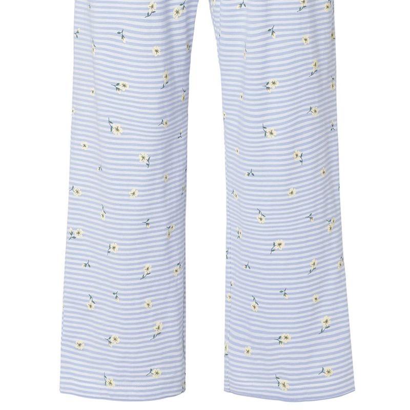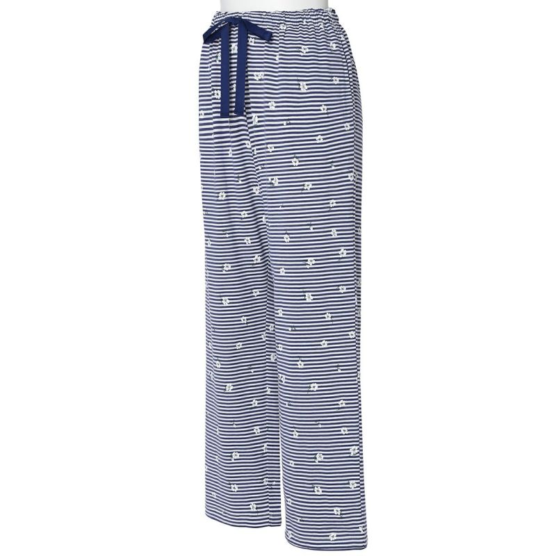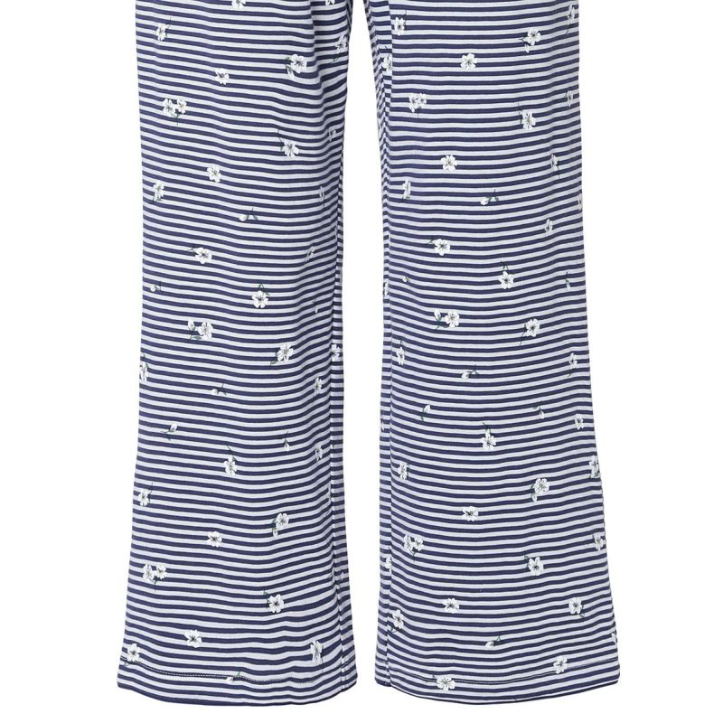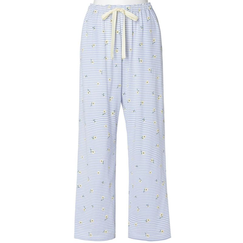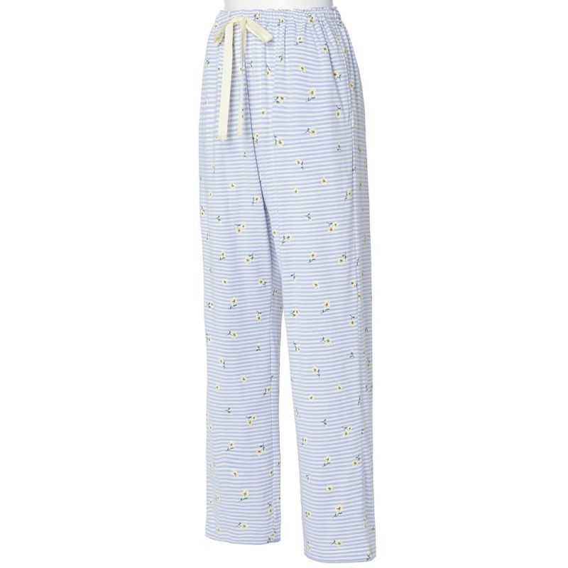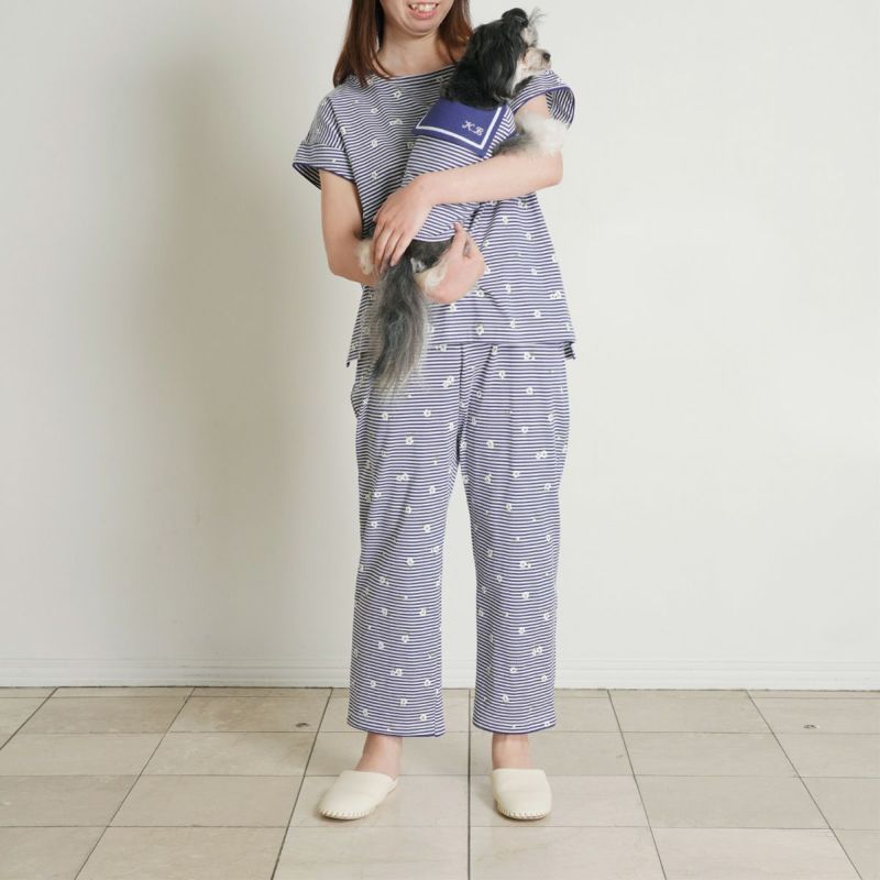 ボーダー柄の天竺素材に散りばめられた小花が映える、カジュアルすぎず、甘すぎないそんな絶妙なバランスが魅力です。清涼感のあるサックスとブルーの2色展開。