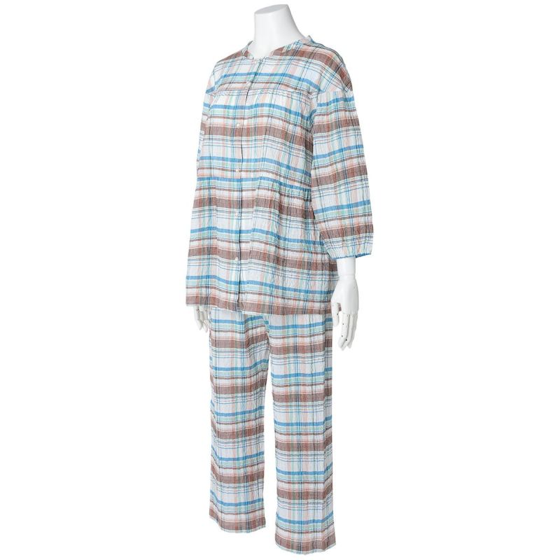 - 身長:166cm / 普段サイズ:L チェックの配色が絶妙なバランスで明るく涼しそうで決めました。形はふくらみがあって軽く生地に凹凸があるので、肌に貼りつかず涼しい感じです。洗ってもシワが残り継続性があるので、暑い夏に良い素材だと思いました。