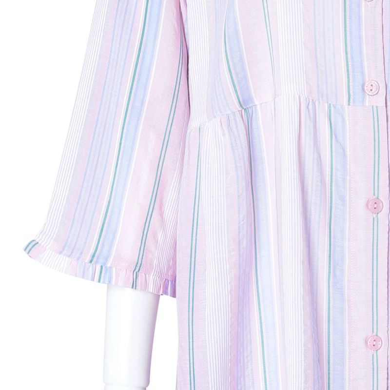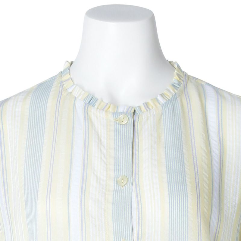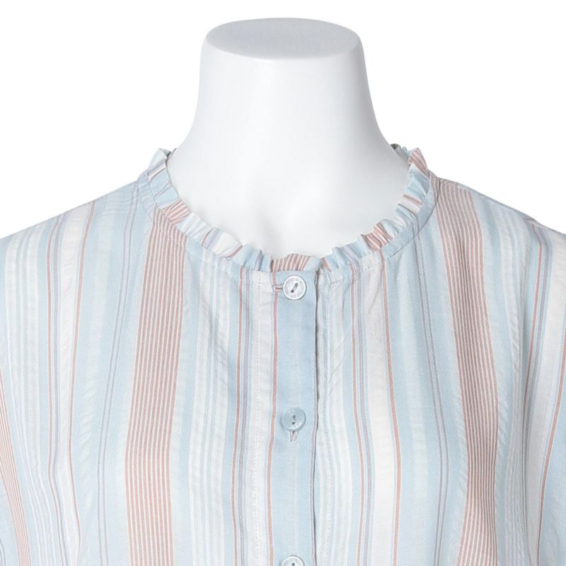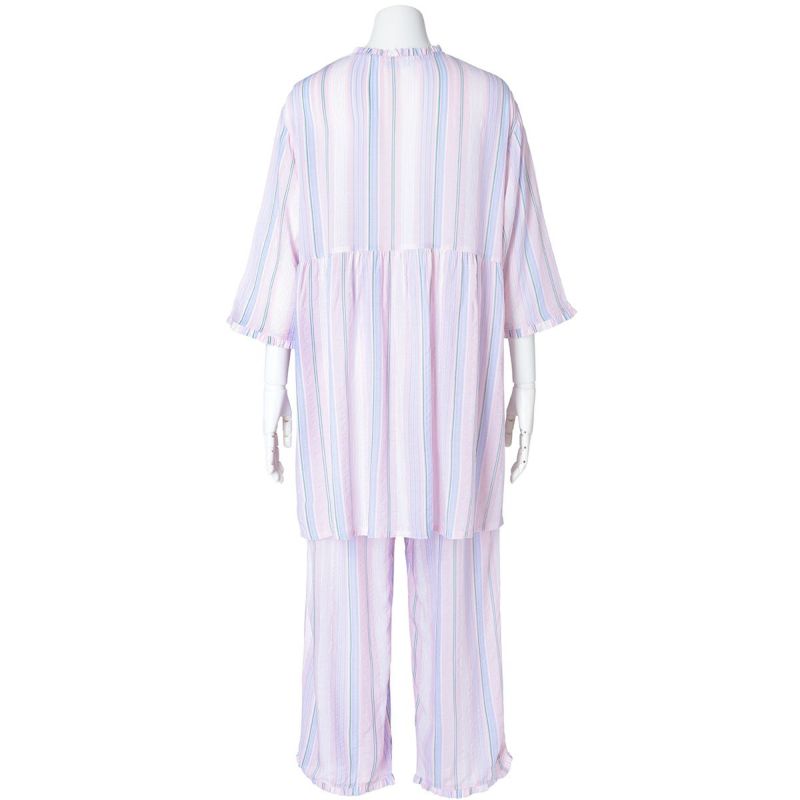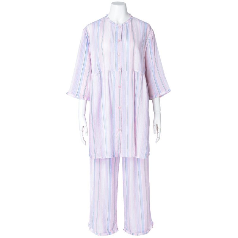 生地に凹凸を出したさらっと肌離れが良く春夏にちょうどいい素材のナイトウェアシリーズ。自然な落ち感が美しい。縦ラインを強調するオリジナルのストライプ柄は細見え効果も嬉しい。