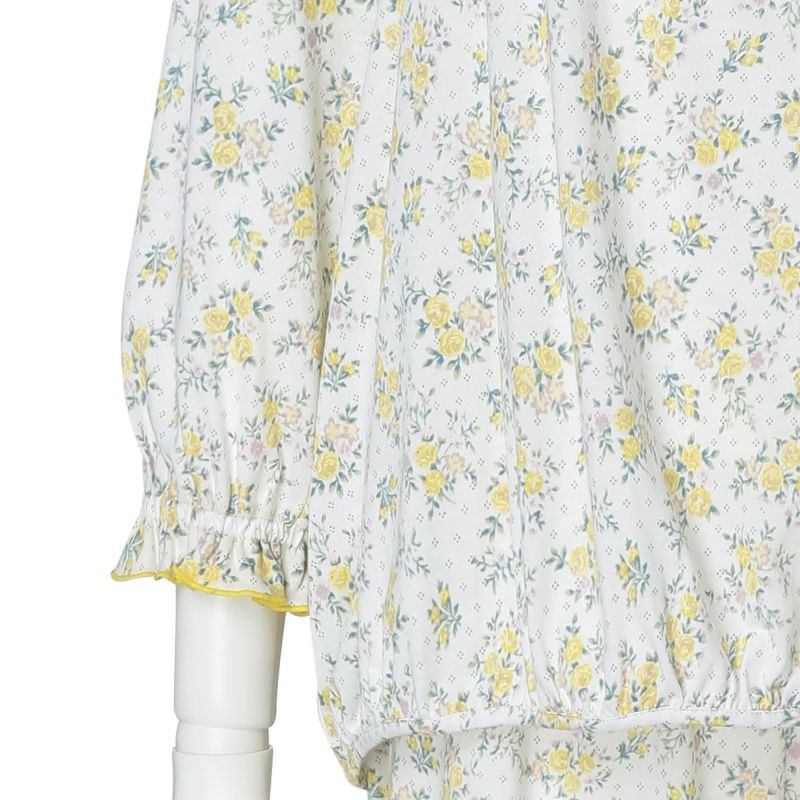 青い小花が着映えるブルーと、身生地に散らした小花が大人のかわいらしさを演出するイエローの2色展開。