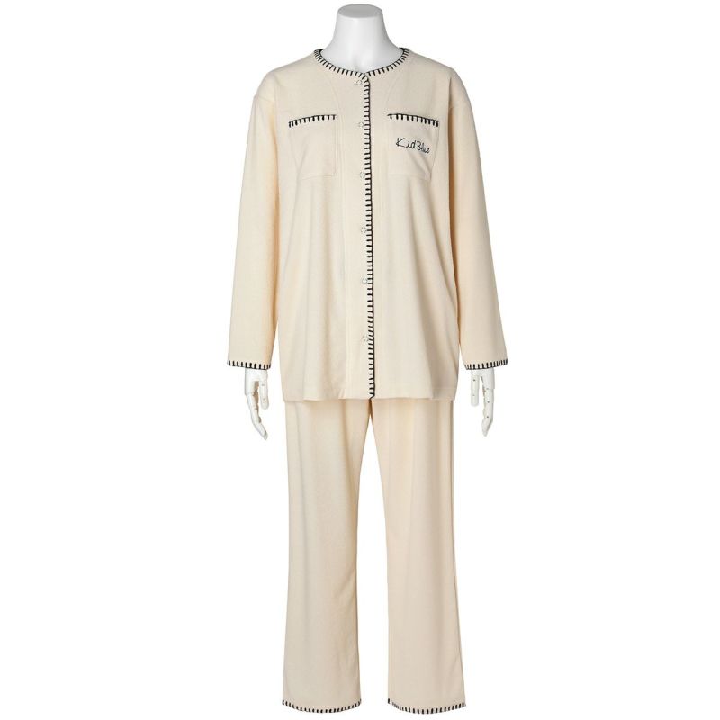 着替えやすく長く愛されるベーシックな前開きタイプの長袖パジャマ。ポケットに施したロゴ刺繍もポイントです。
