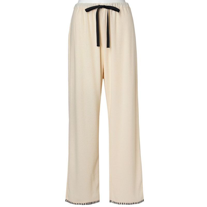 肌触りの良いオーガニックコットンのパイルを使用したナイトウェア。端にはブランケットステッチをあしらい、シンプルな中に遊び心のあるかわいらしさをプラス。ステッチをアクセントにしたシックな2色展開。