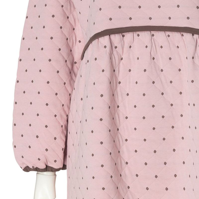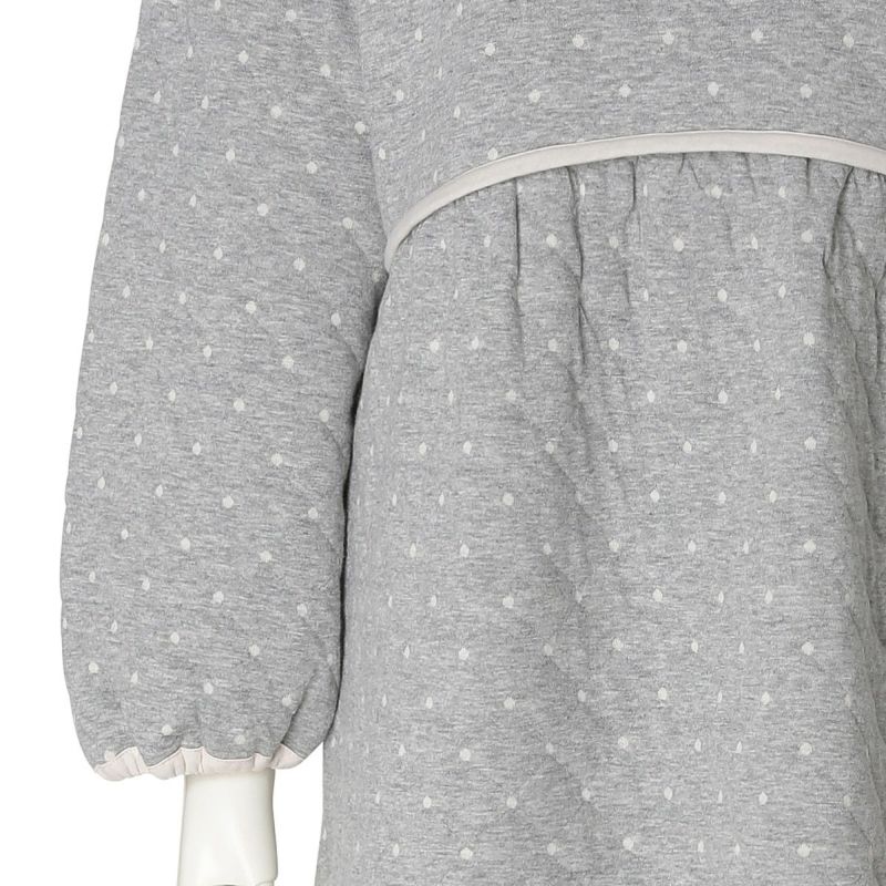 綿ならではのやさしい肌ざわりが心地よい、キルトジャカードのシリーズ。綿と綿の間にポリエステルの中わたをはさんだ三層からなる暖かく軽やかな素材です。ドット柄が上品なかわいらしさを添えます。