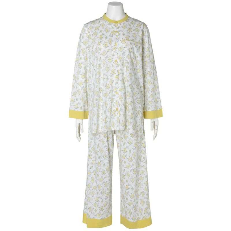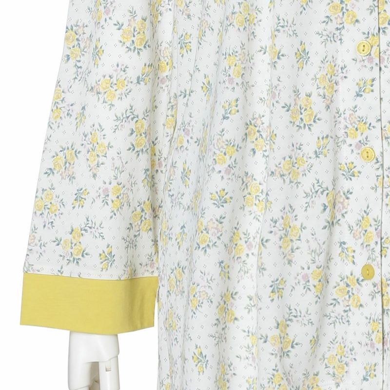 青い小花が着映えるブルーと、身生地に散らした小花が大人のかわいらしさを演出するイエローの2色展開。