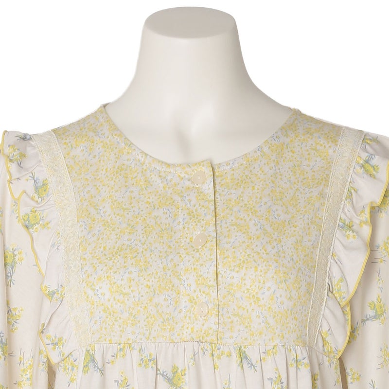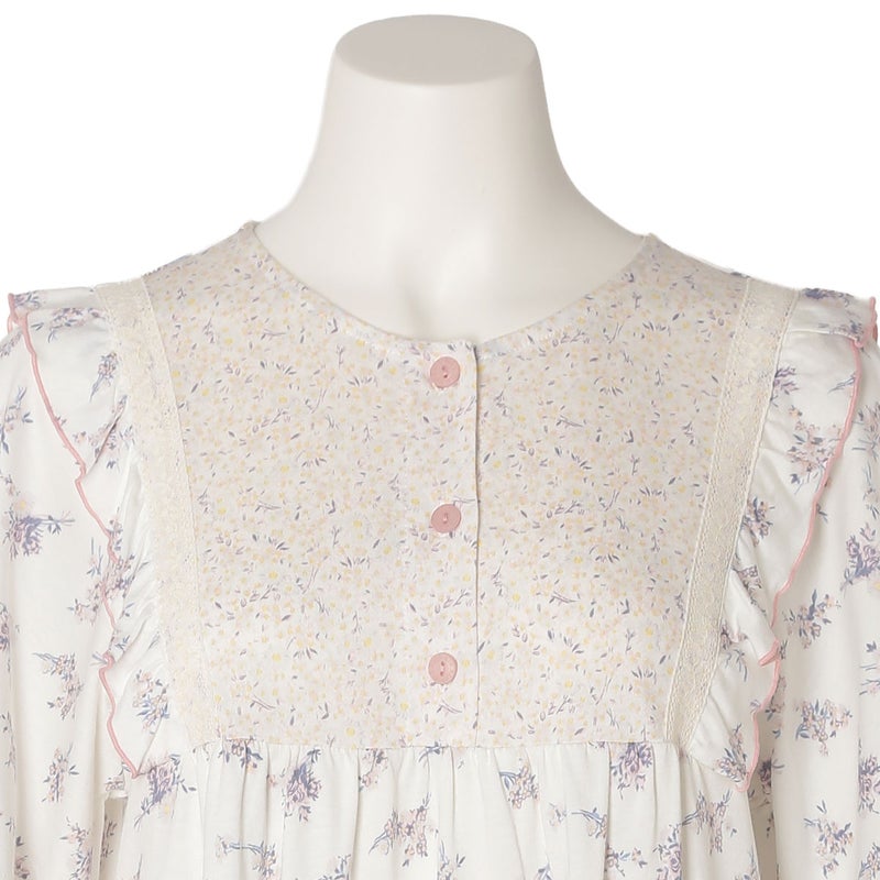 やさしいブーケと小花が印象的なフラワープリントシリーズ。異なる2種のプリントを組み合わせることで、ほどよい華やぎ。素材には、落ち感が美しくなめらかな風合いのレーヨン生地を使用。春を感じさせるきれいな色合いもポイント。