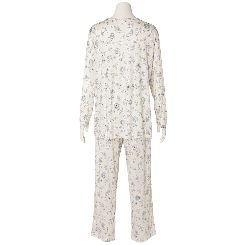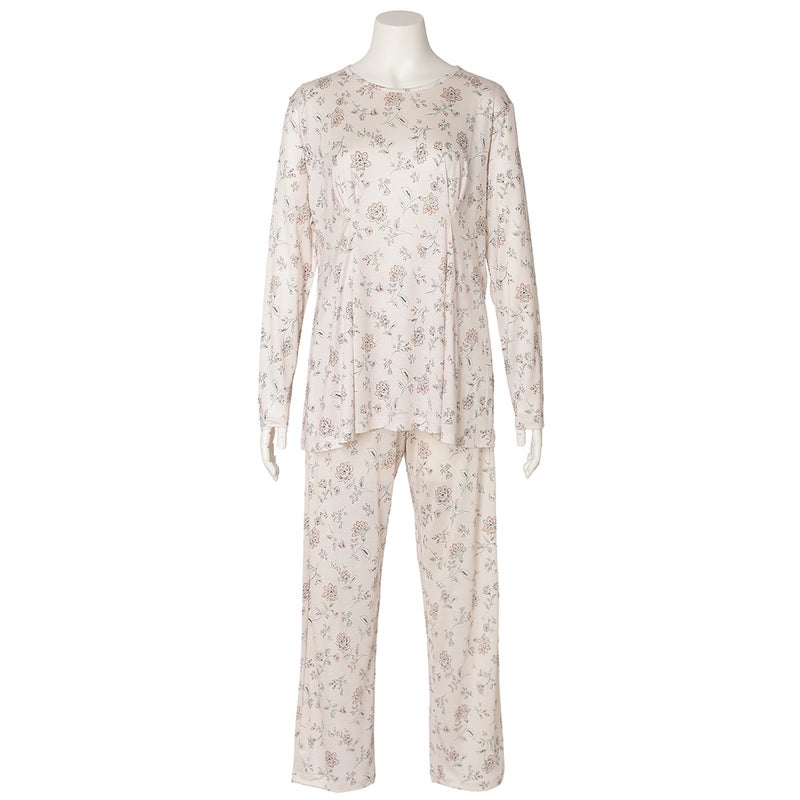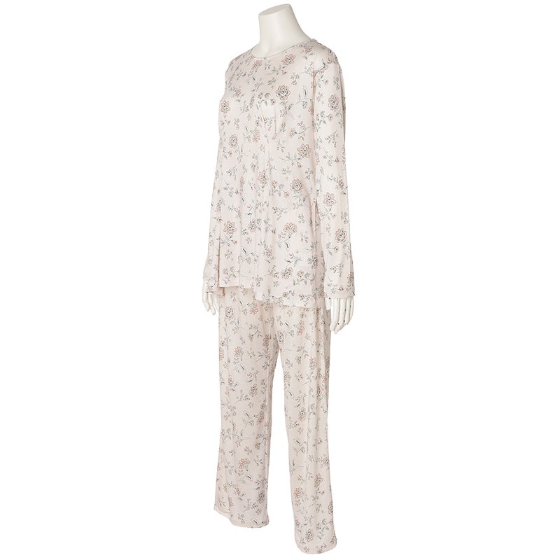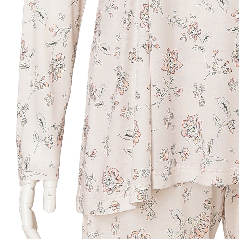 柔らかな素材感を楽しめる長袖パジャマ。トップスはバストにタックを施し、裾にかけてやわらかく広がるシルエットに。気になるお腹まわりをさりげなくカバーし、安心感のある着こなしを叶えます。