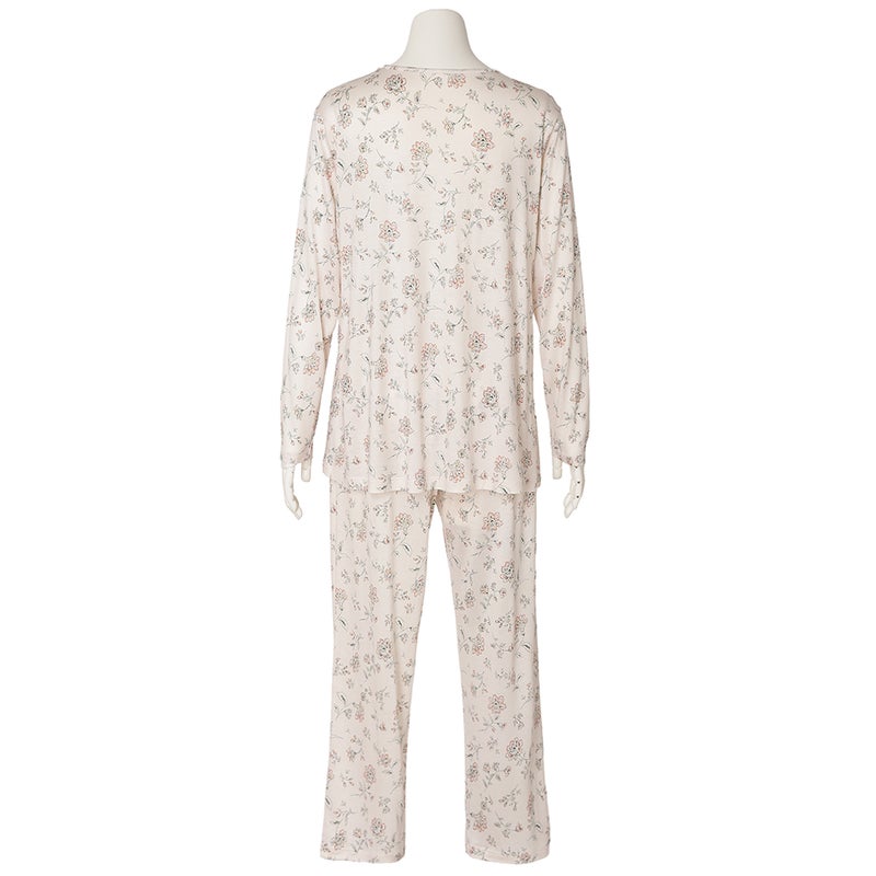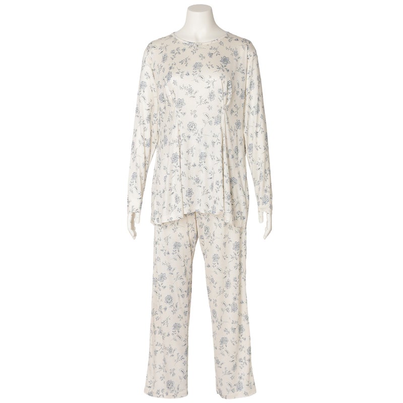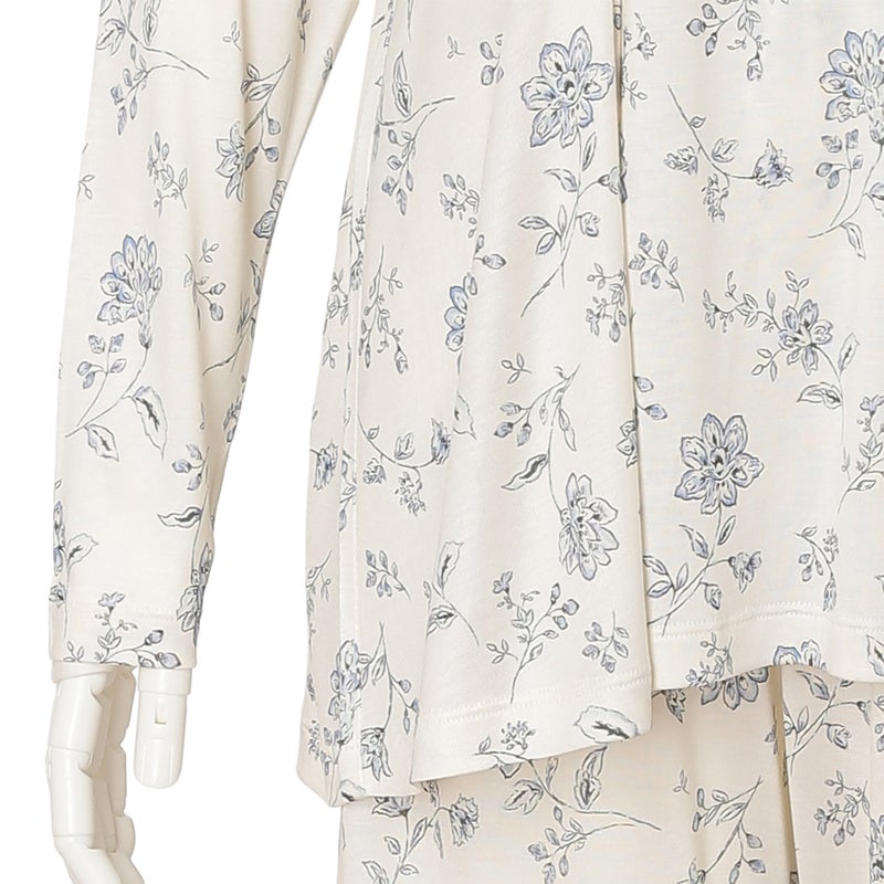 サラサ風プリントの肌にやさしいシルク100%のナイトウエアが登場。花々をモチーフとした繊細でやわらかなタッチのオリジナル柄が新鮮です。吸放湿性に優れたシルクは、季節を問わず心地よくお召しいただけます。シレー加工を施すことで、ほどよいハリと上品な光沢を備え、シワになりにくい扱いやすさも兼ね備えています。