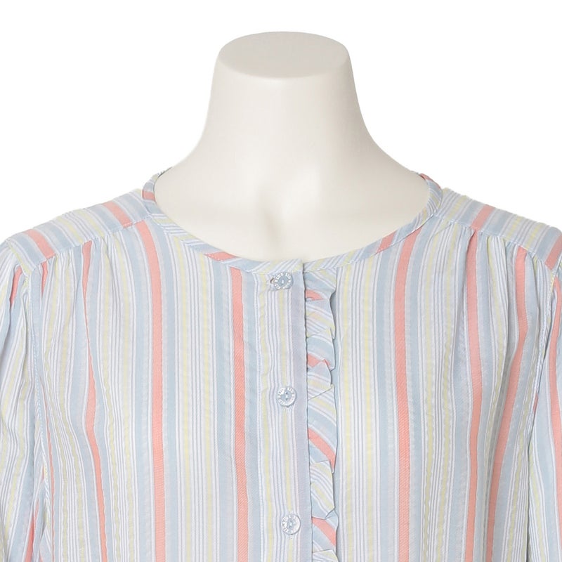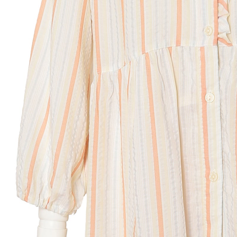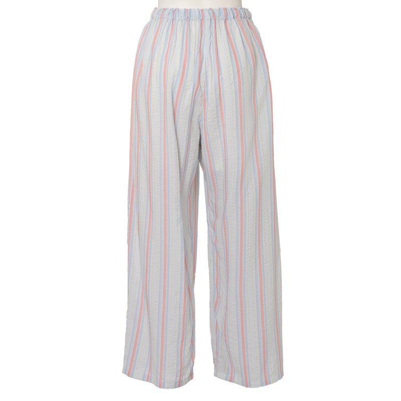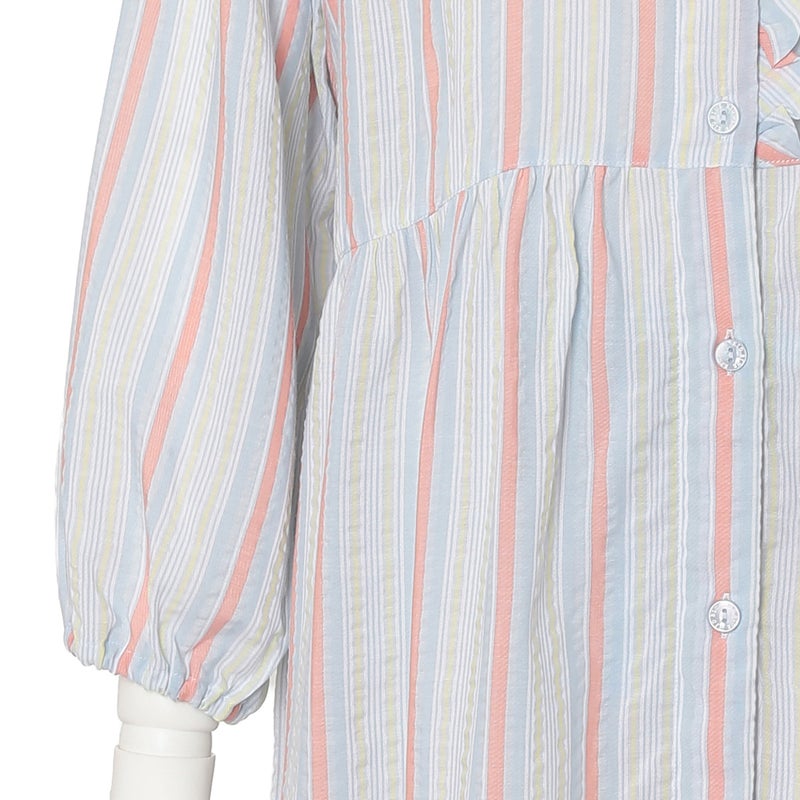 キッドブルーの夏の定番として愛されるサッカー素材が今年も登場。生地の凹凸が肌との間に空気の層を作るので肌離れがよくベタつきや張り付きをおさえます。さらっとした軽やかな肌触りは、一度袖を通すと手放せなくなる心地よさです。差し色の効いたストライプ柄に仕上げました。