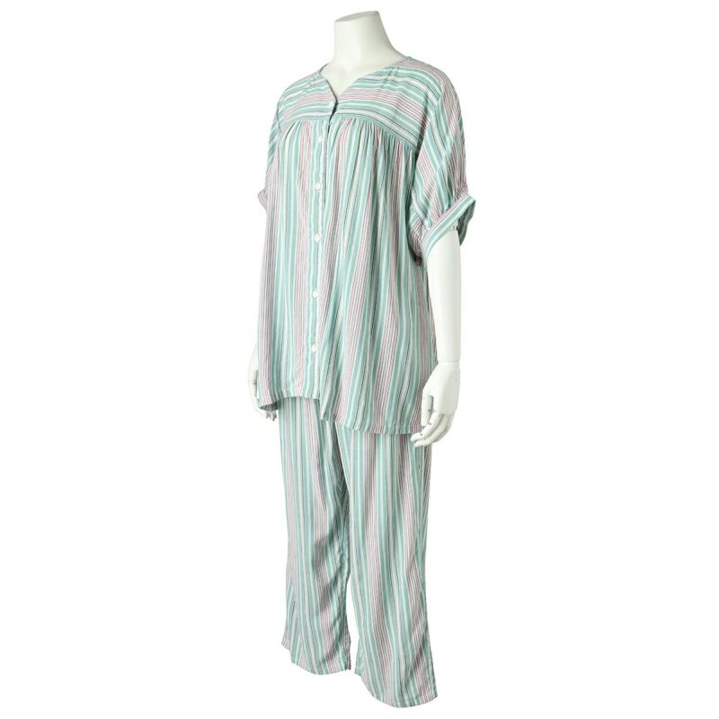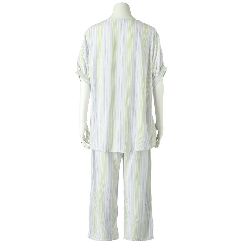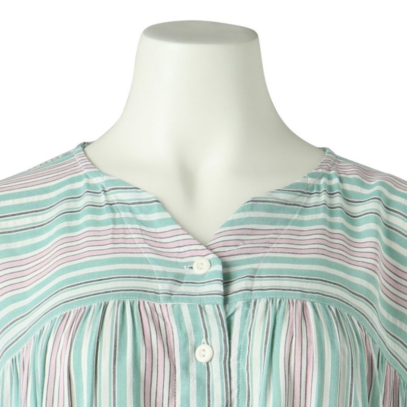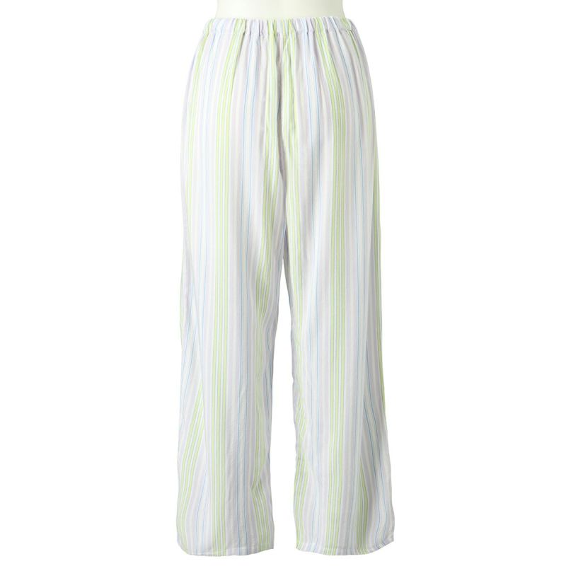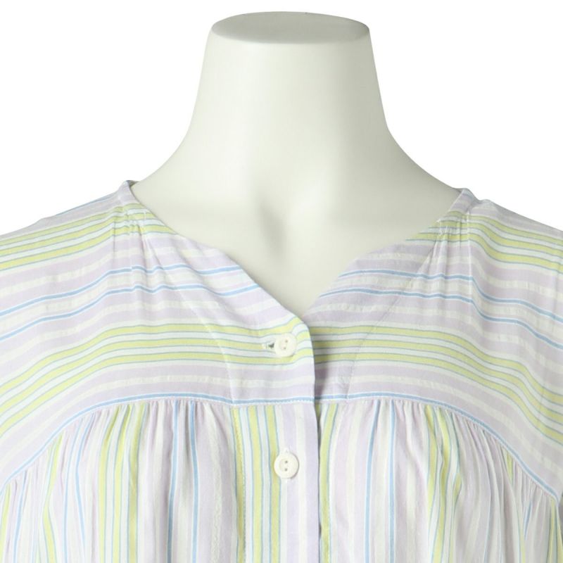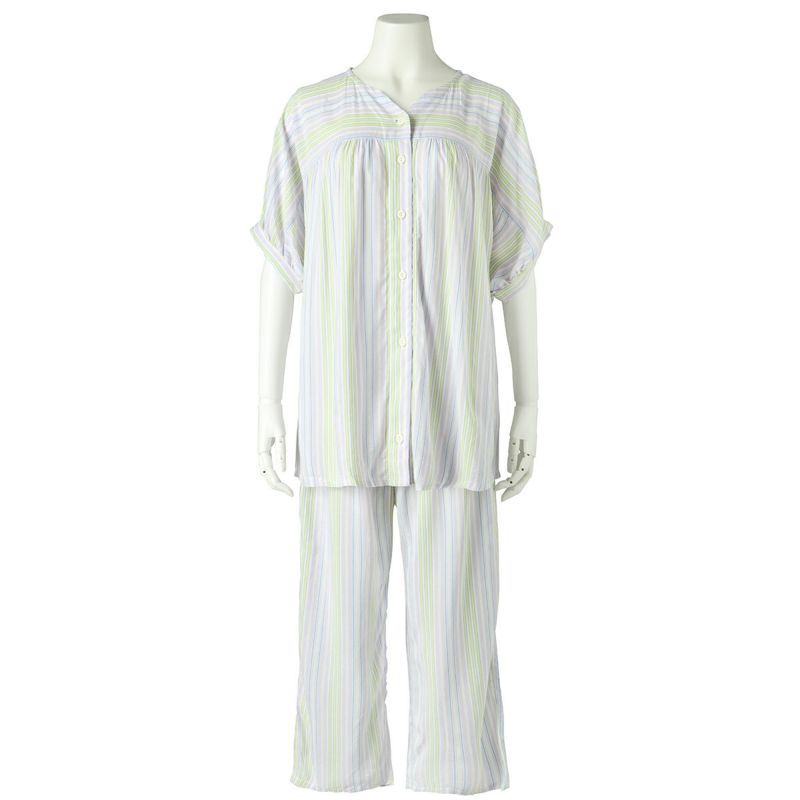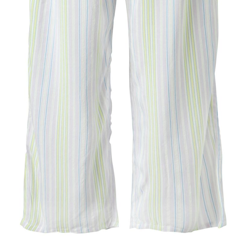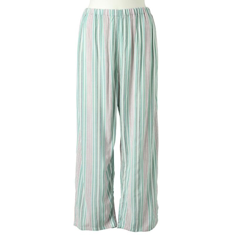 自然な落ち感のあるシルエットが人気のストライプナイトウェアシリーズ。レーヨンと綿の縮率差で生地に凹凸を出した肌離れの良い素材。配色が爽やかなのラベンダーとグリーンの2色展開。