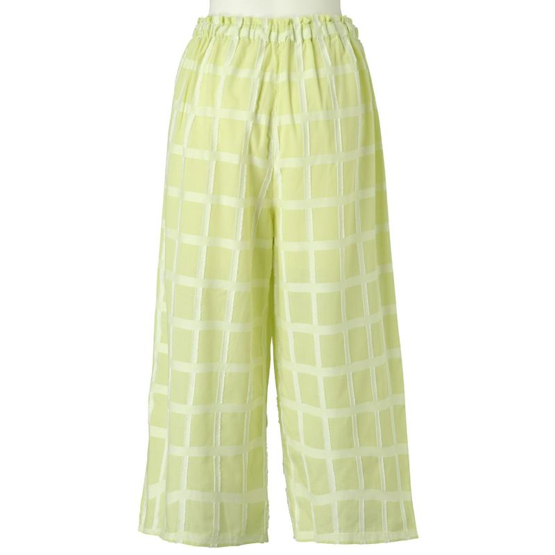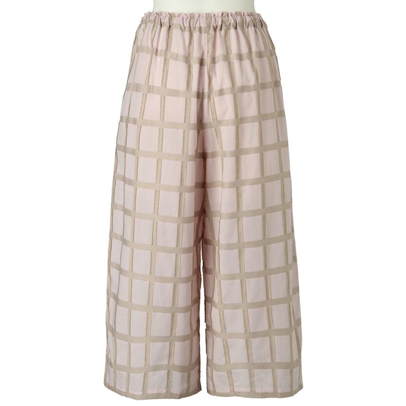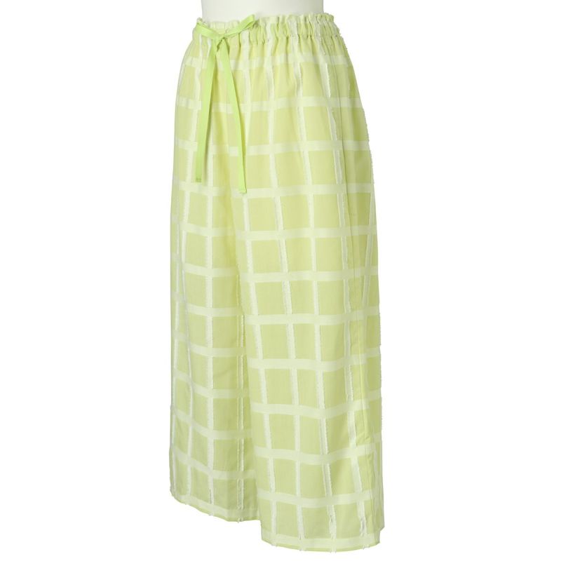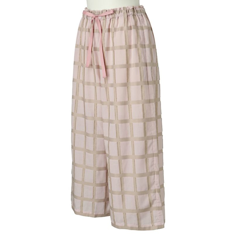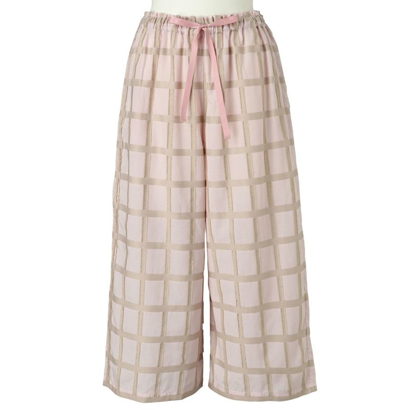 表面感のあるチェック柄が新鮮なナイトウェア。チェックの横柄部分がフリンジになっていて立体感のある綿混のカットドビー素材を使用したシリーズ。夏にぴったりな爽やかに着こなせる素材です。