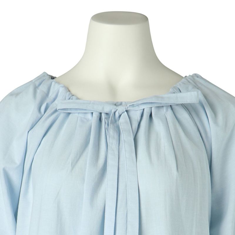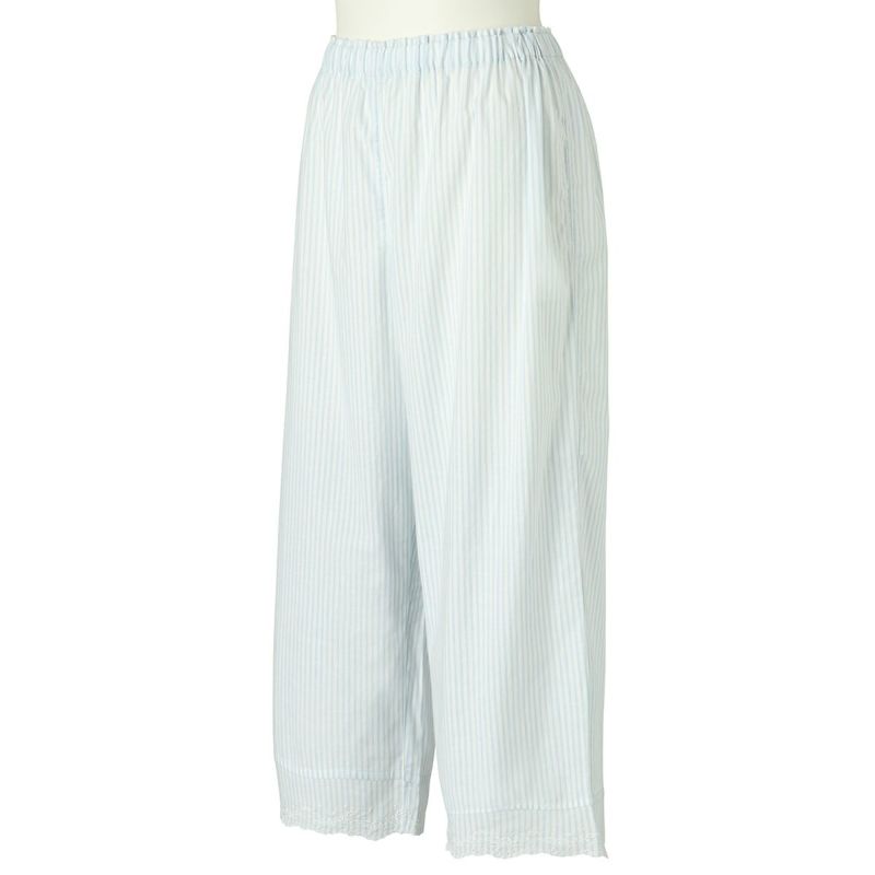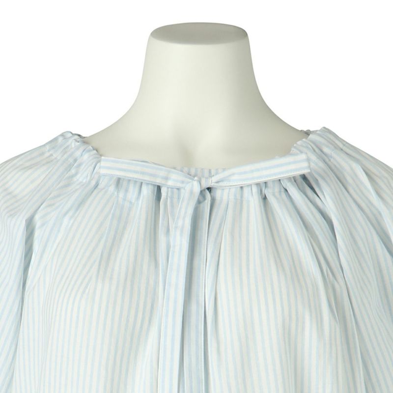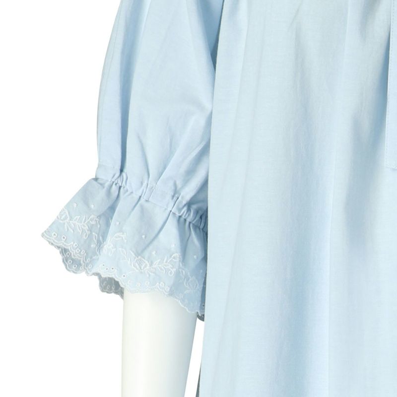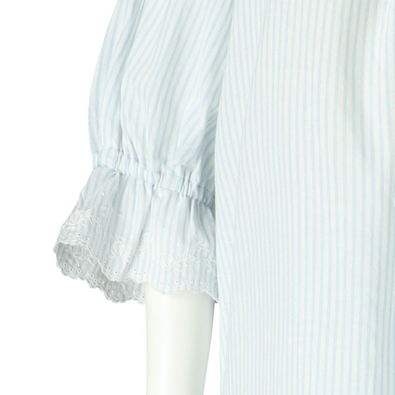 広幅のエンブロイダリーレースがフェミニンなシリーズ。さらっとした新素材コットンシャンブレーワッシャーを無地とストライプの2色をアイテムにより効果的に組み合わせました。春を感じるキッドブルーらしい爽やかでクリーンなカラーリング。