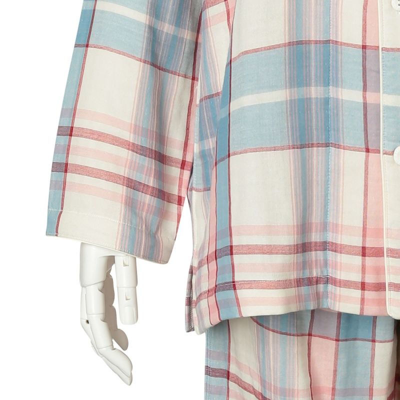 肌側に無撚糸を使用したトリプルガーゼシリーズ。空気を含んだ3重構造のガーゼはふんわり柔らかな肌触りの人気素材。シーズンカラーを取り入れそれぞれ異なる雰囲気の大ぶりのチェック柄がポイント。