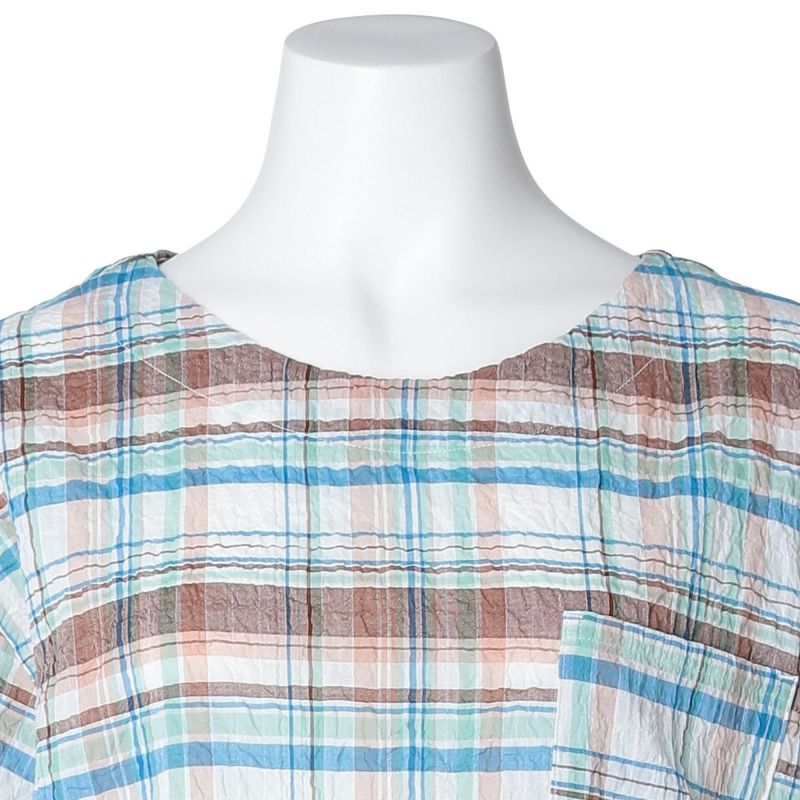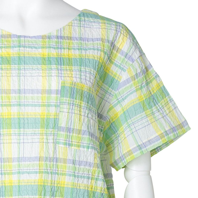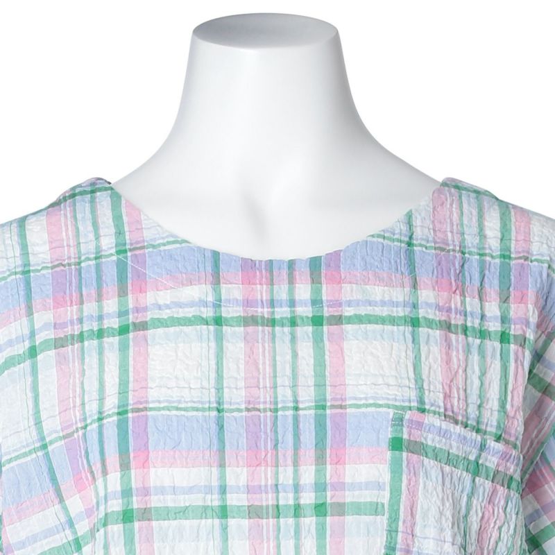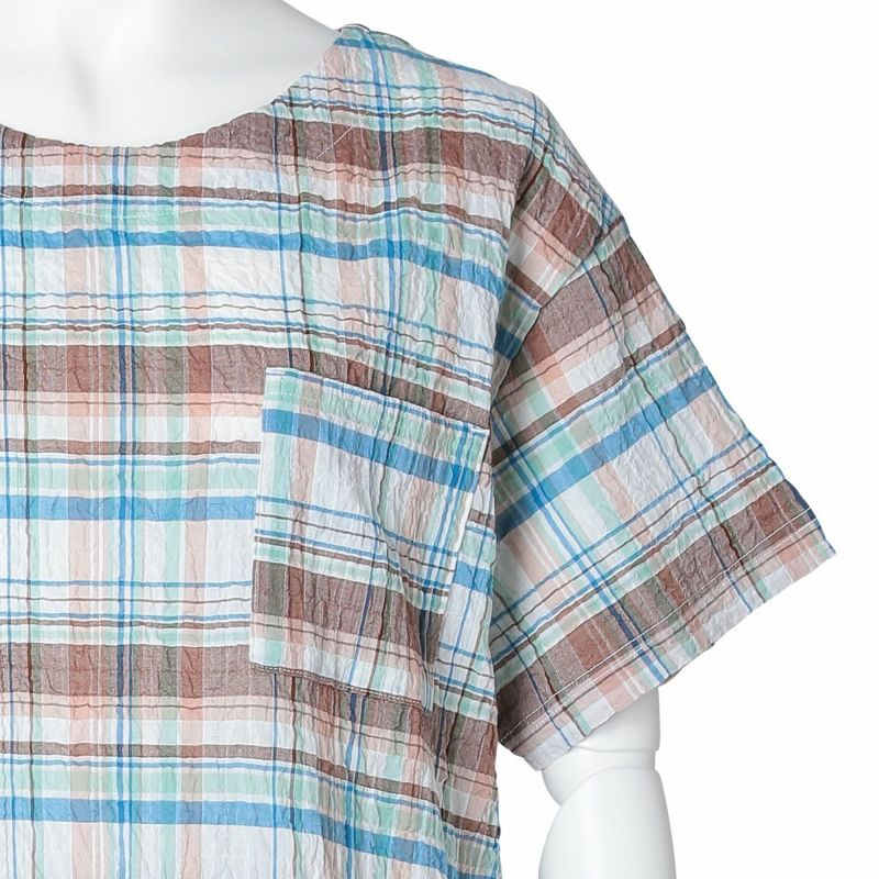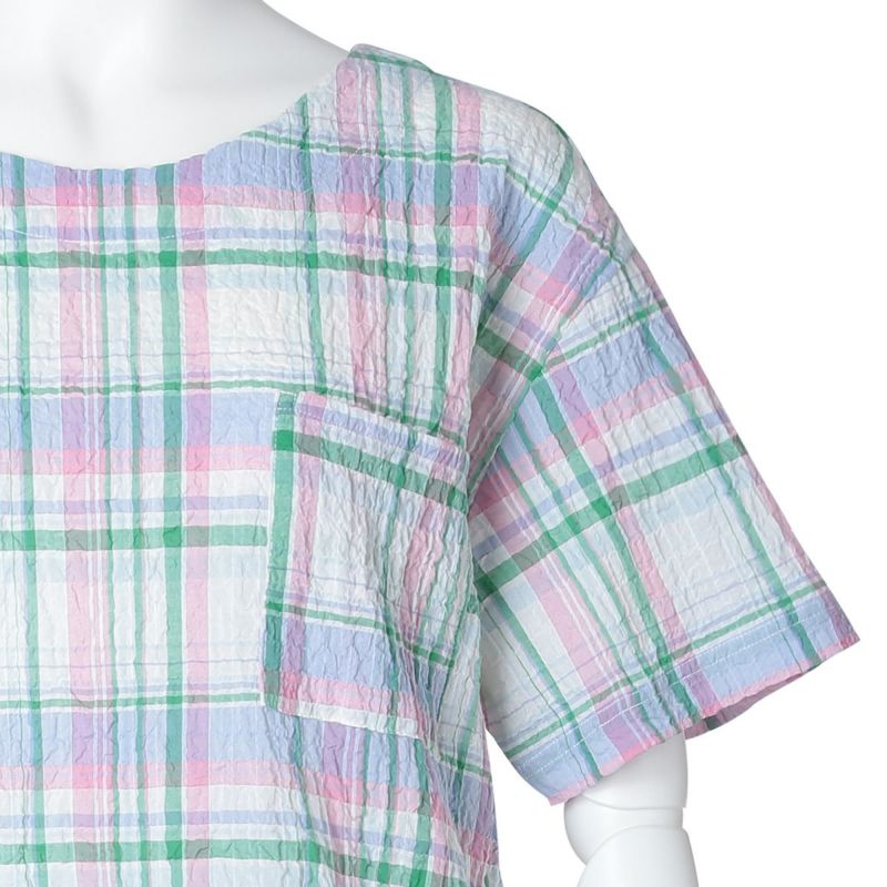 凹凸があり肌離れがよくさらっと着られる、キッドブルー毎年人気のシャーリングシリーズ。タテヨコにポリウレタンを入れシボ感があるため、清涼感のある着心地。夏に最適な軽やかな素材と、爽やかなカラー展開が魅力。
