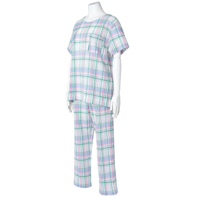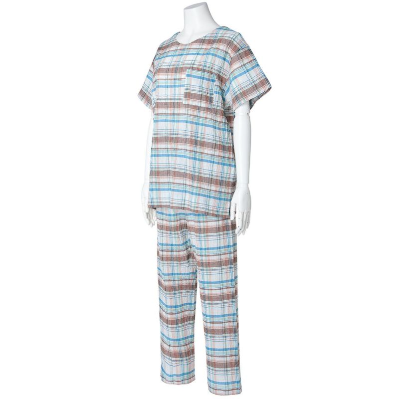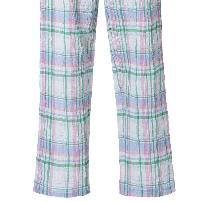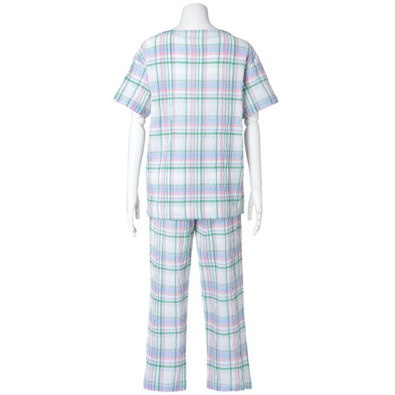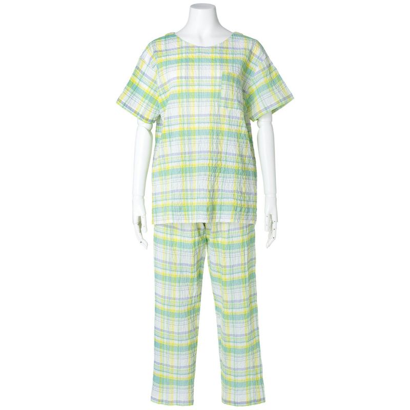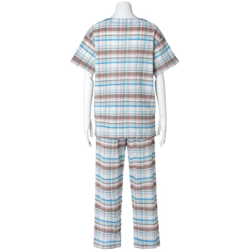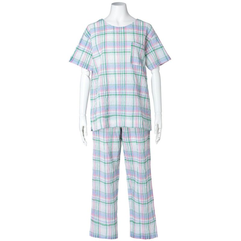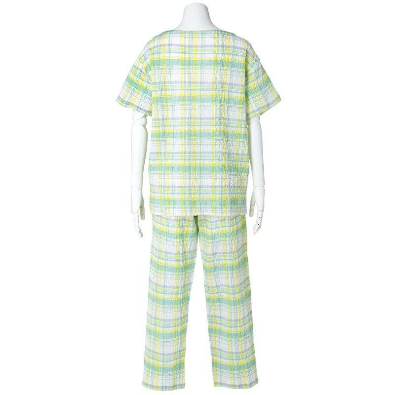 半袖パジャマは、すっきりしたラウンドネックでかぶりタイプのデザイン。パンツはストレートシルエット。ユニセックスなのでサイズ展開も幅広くお好みのサイズ感で選んだり、ペアコーディネートも楽しめます。ギフトにも◎