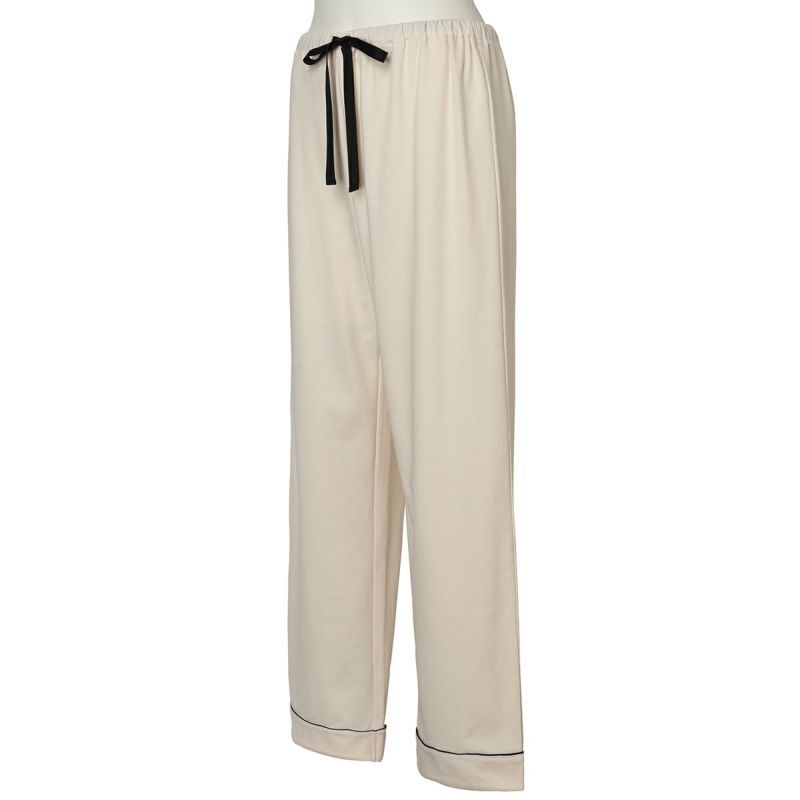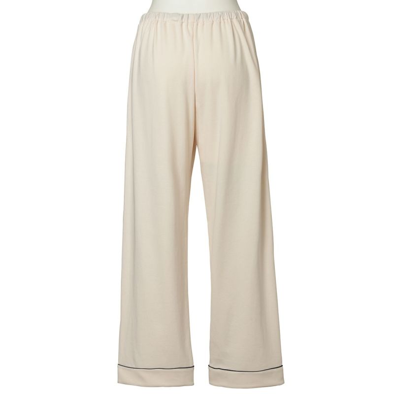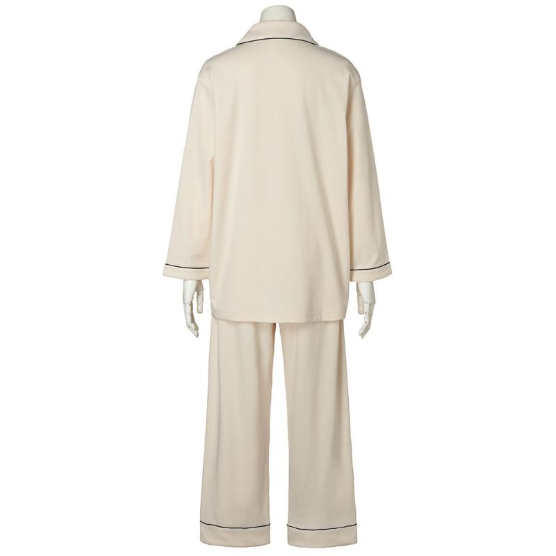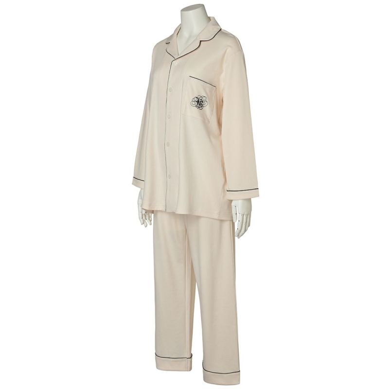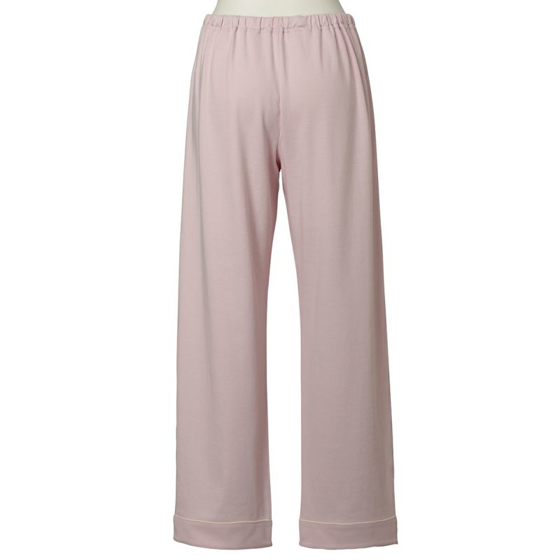 きめの細かい綿100%スムースを使用したグレイスフルコットンシリーズが、素材をブラッシュアップして登場!超長綿の糸を使用しているため、なめらかでしなやかな肌触り。程よい厚みでロングシーズン使いやすい。配色パイピングとロゴ刺しゅうがポイントのホテルパジャマ風デザイン。カラーは使いやすいアイボリー・ネイビーと優しい色合いで肌に映えるピンク。