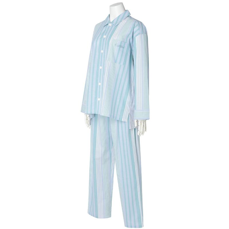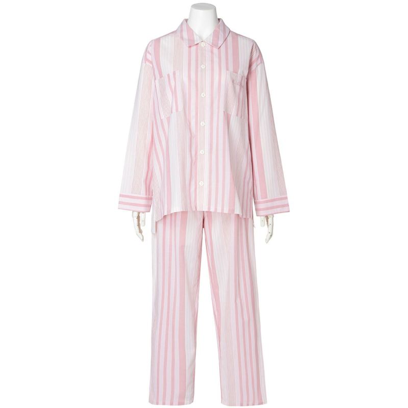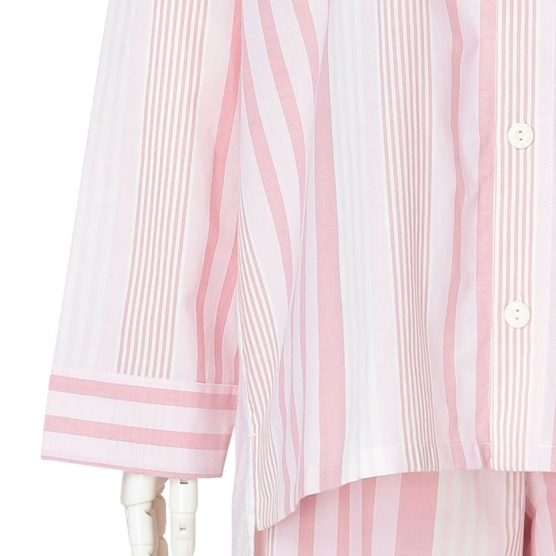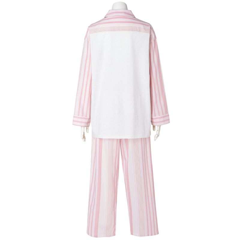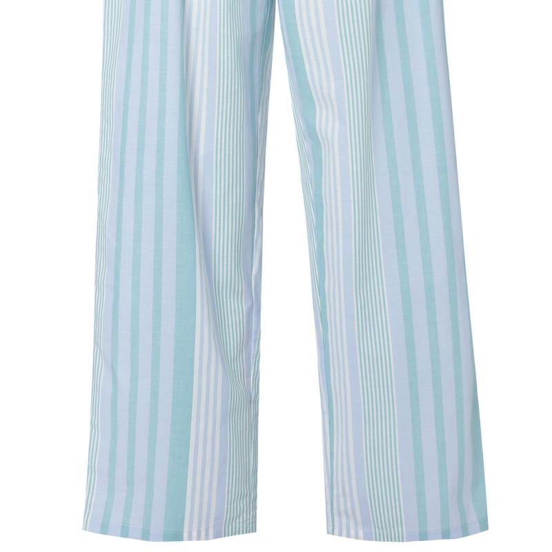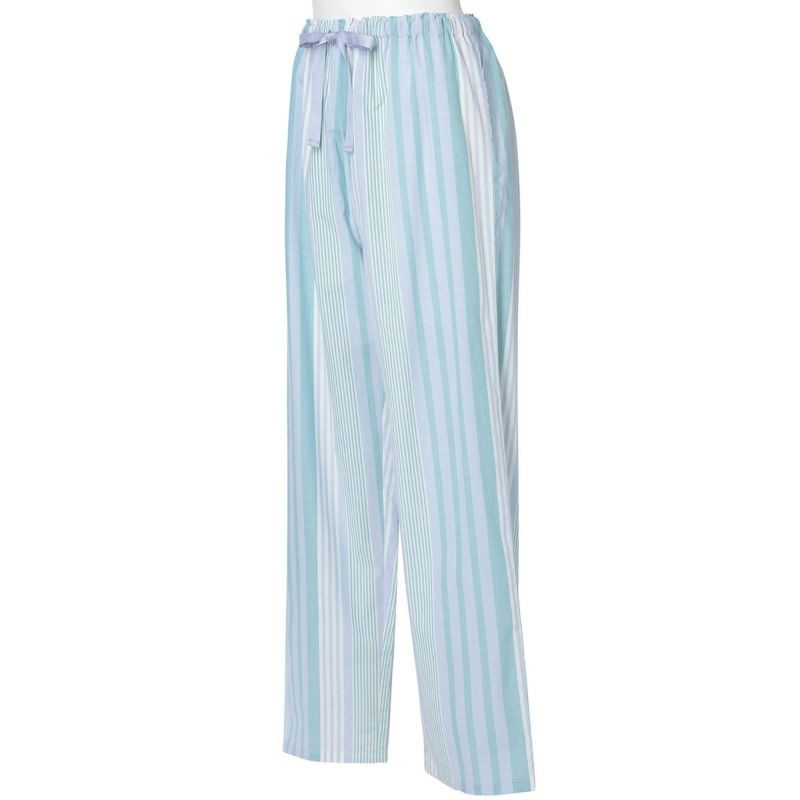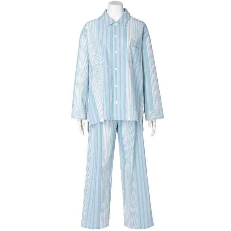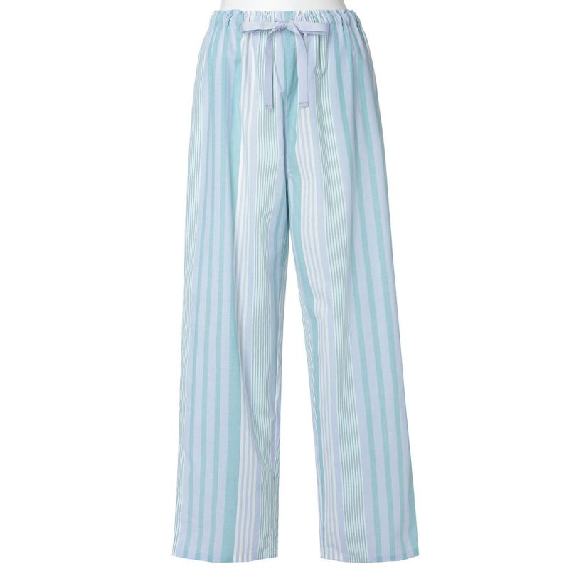 布帛のマルチストライプと杢カラーの天竺を組み合わせた、こだわりのナイトウエアシリーズ。天竺を組み合わせることで生まれる柔らかな肌触りと着心地のよさで快適に。安心の綿100%。落ち着いたパステルトーンで顔映りも明るくみせます。
