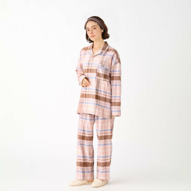 ほどよい厚みとぬくもりのあるオリジナルチェックのネル素材ナイトウエアシリーズ。椿オイル加工を施しやわらかな風合い。肌側に起毛をかけふんわりした肌触りが心地よくつつみます。