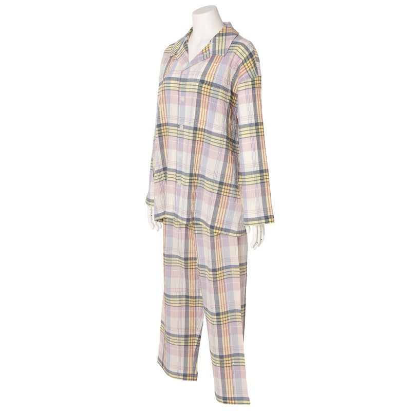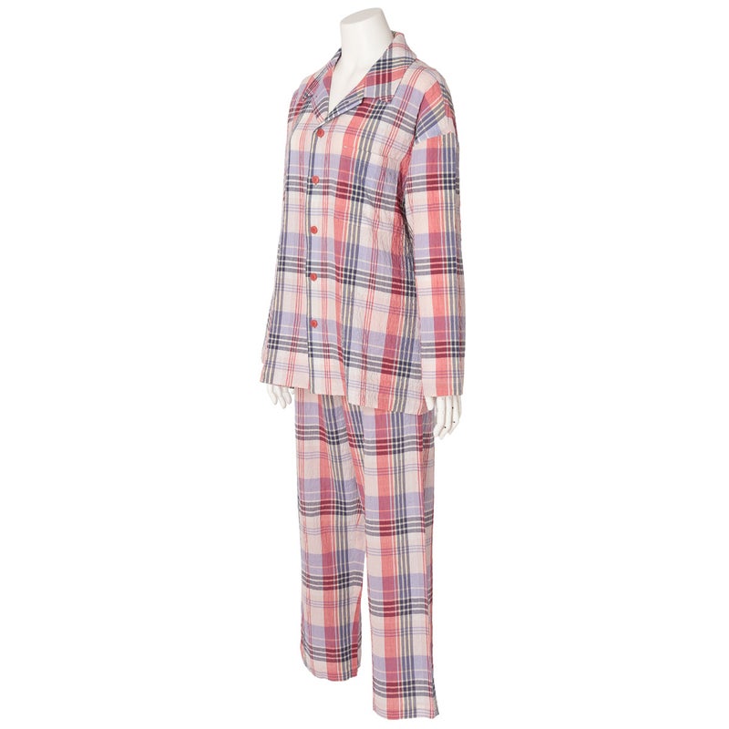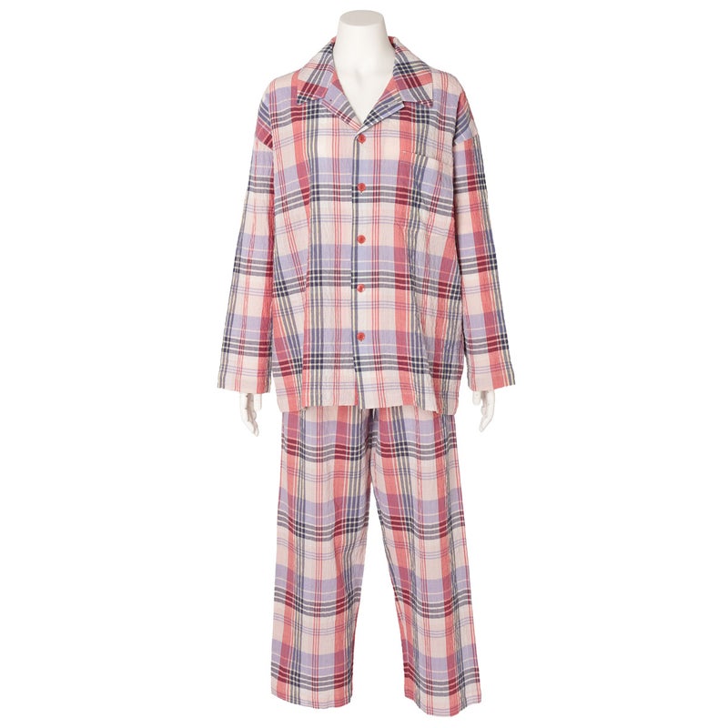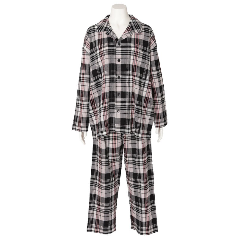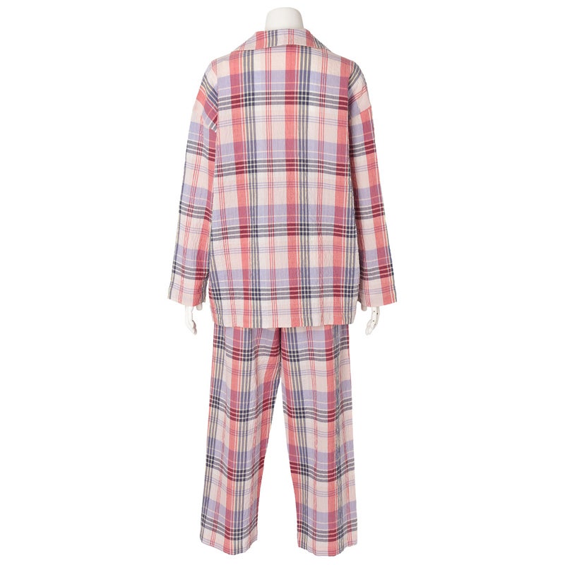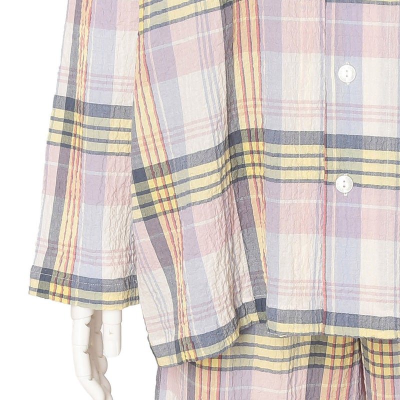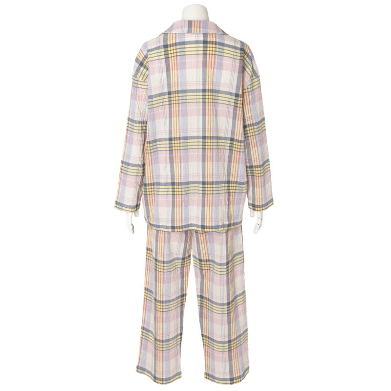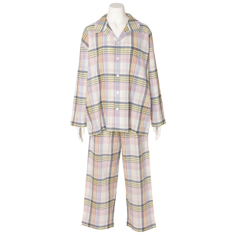 ユニセックスサイズならではのゆったりしたシルエットのパジャマ。襟元は開襟としてもボタンを上まで留めても楽しめる便利な2wayタイプ。薄手の長袖なので春先から夏の長い期間、さらりと快適に着用できます。