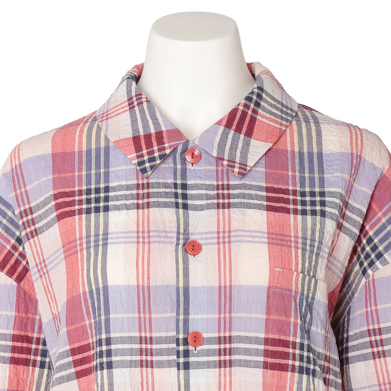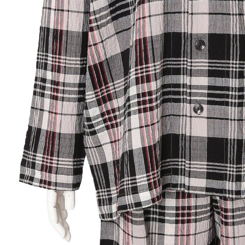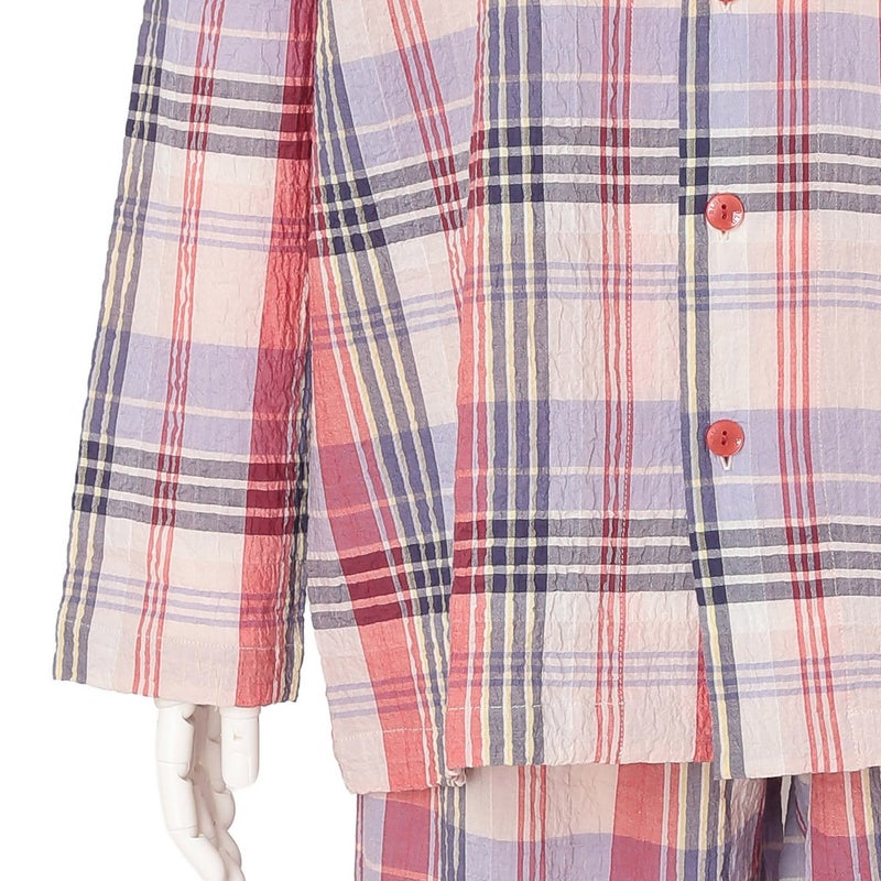 清涼感のある着心地で多くのお客様に愛されている「シャーリングチェック」シリーズから待望の新作が到着。タテヨコに入れたポリウレタンを織り込むことで表現した表情豊かな凹凸感。肌に触れる面積が少ないためサラッと軽やかな肌当たり。奥行きのある素材に乗せたのはラインの幅や太さをミリ単位で計算しつくしたオリジナルのチェック柄。