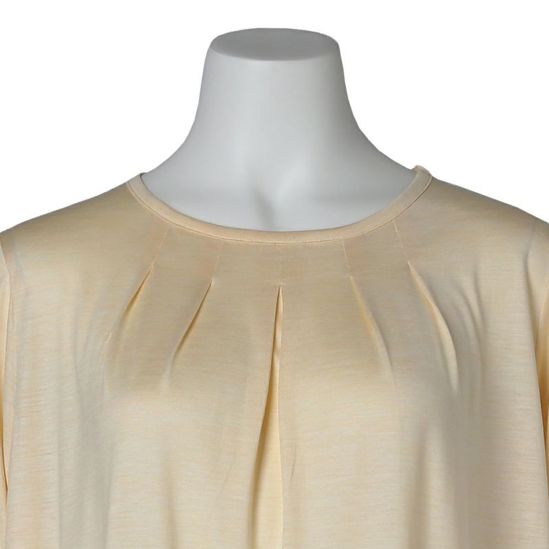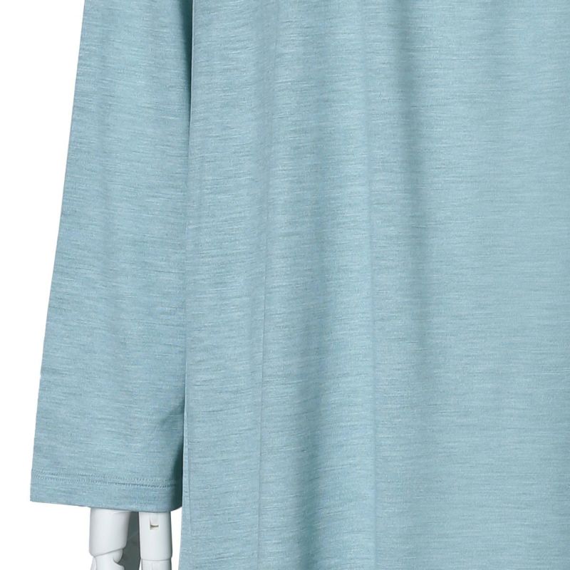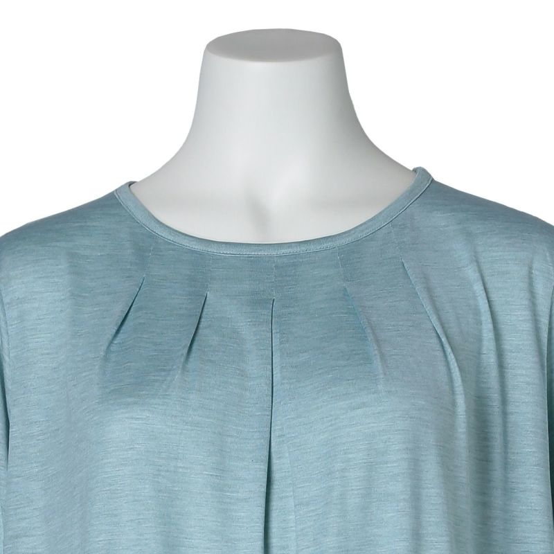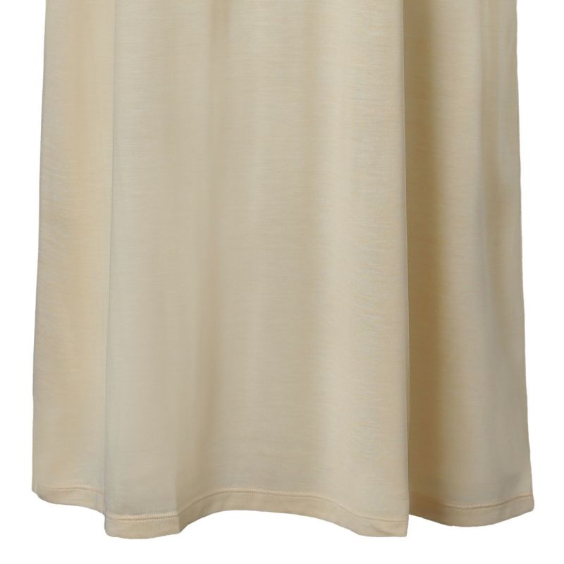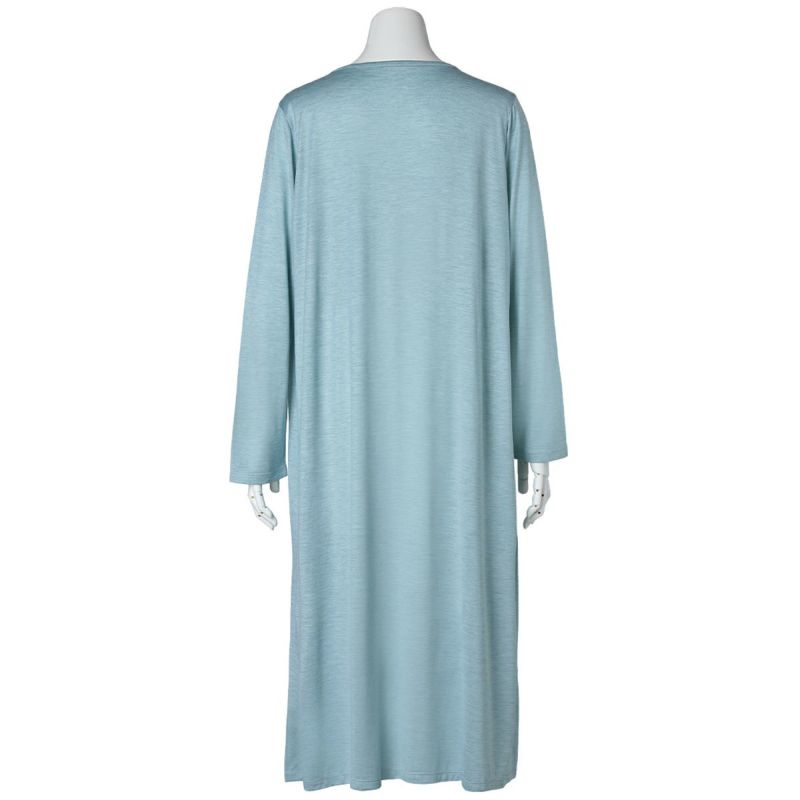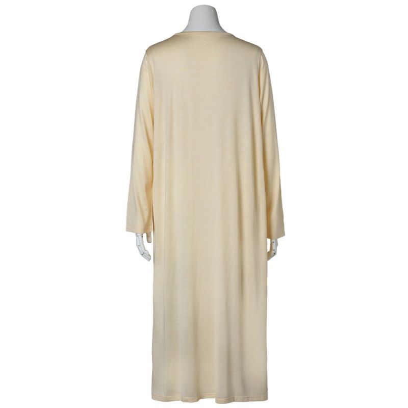 自然な落ち感があり、ストレスなく着ていただける長袖ナイティ。襟ぐりは開きすぎずつまりすぎない、ゆるやかなカーブライン。襟元の丁寧なタックがシンプルな中に上品さを感じさせます。