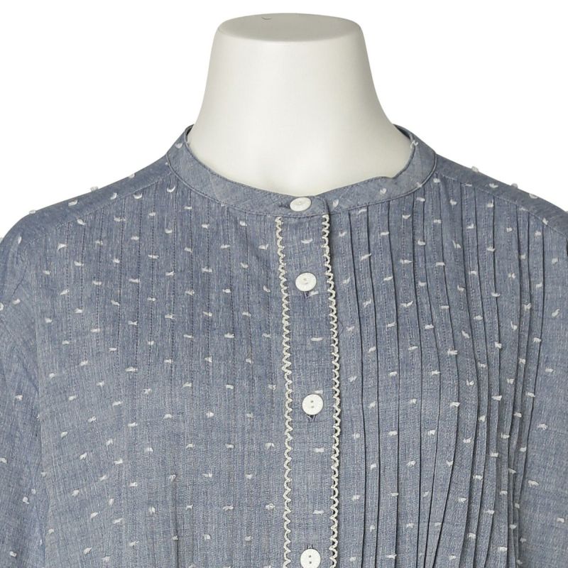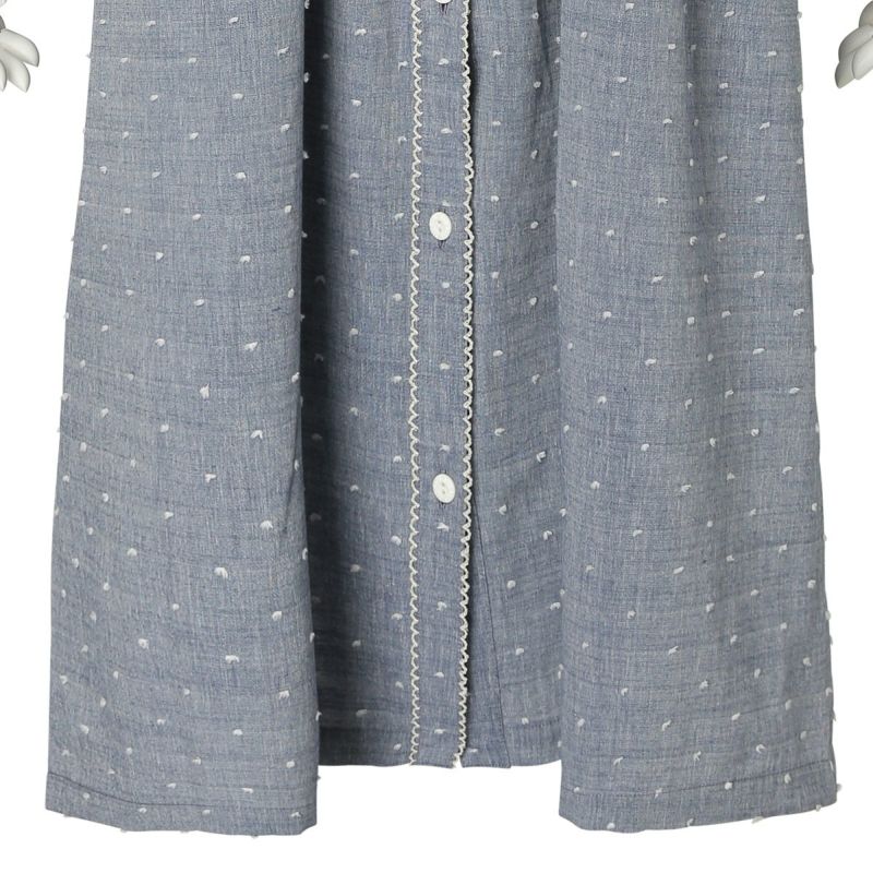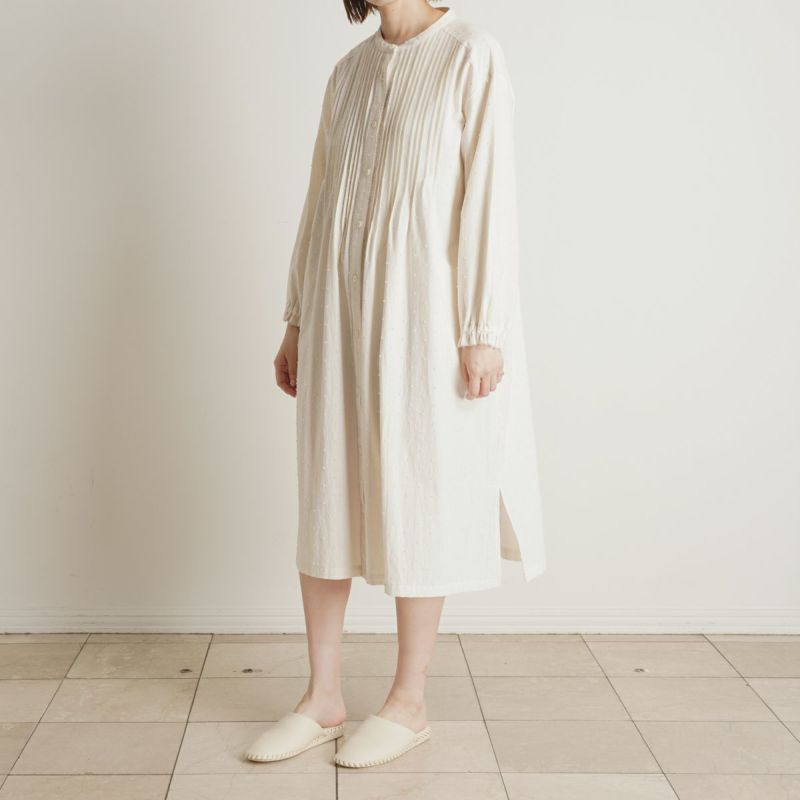 さりげないドットがかわいらしいナイトウエア。緯糸にオーガニックコットンを使ったカットドビー素材。シャンブレー織りでナチュラル感のある表情。