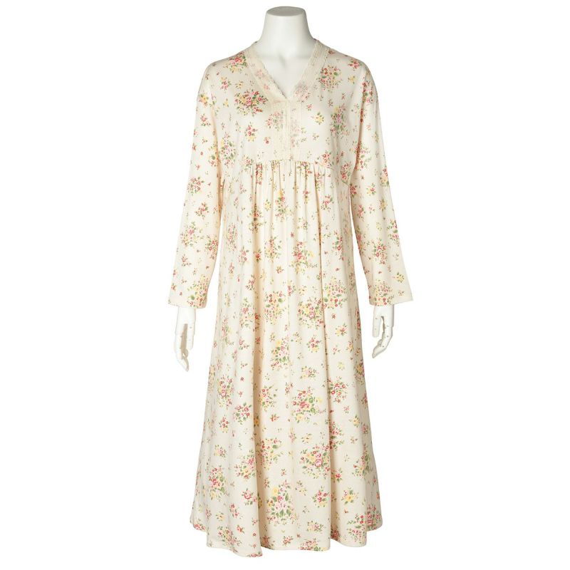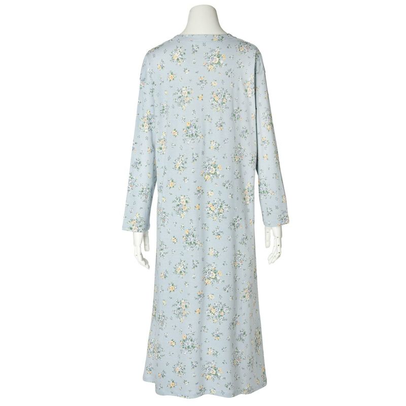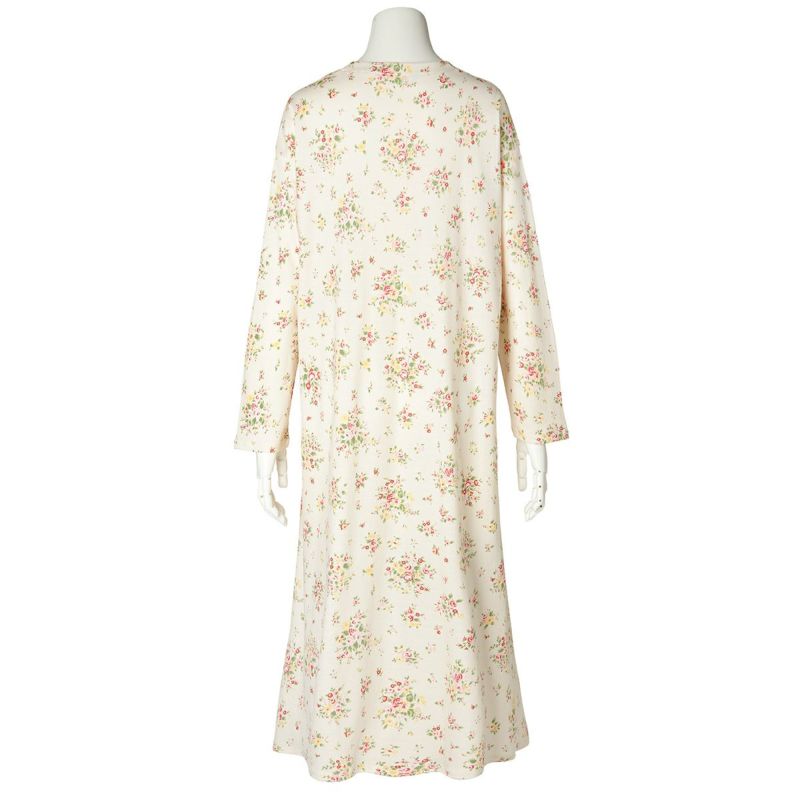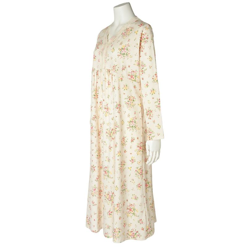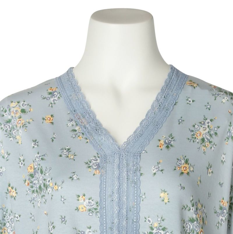 ワンピースタイプのナイトウェアは胸元に施されたレースと切り替えのギャザーでフェミニンに。ゆとりをもたせたドロップショルダー。