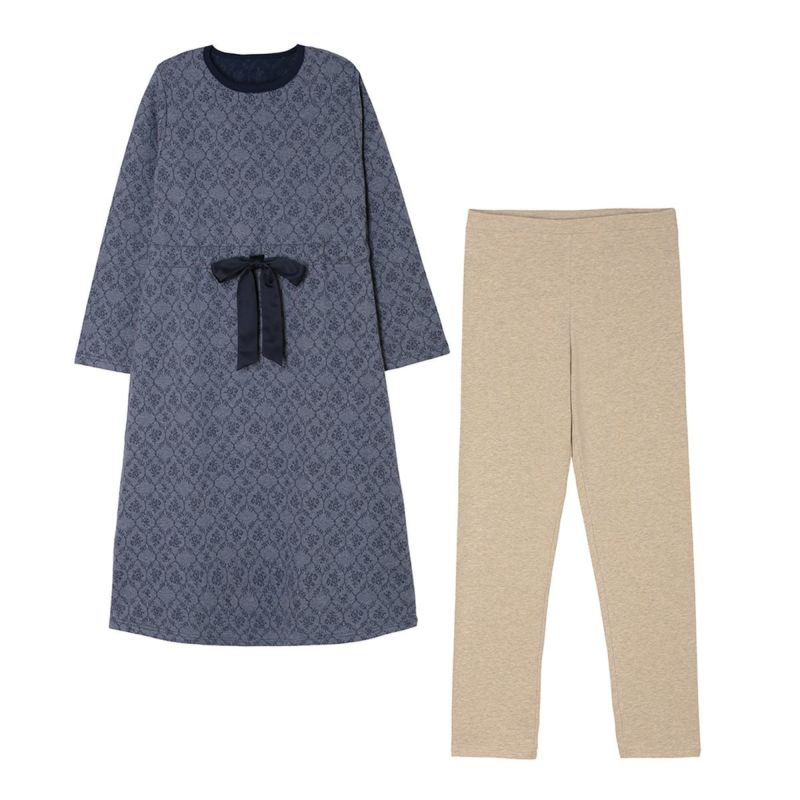 ウエストのサテンリボンがかわいらしいポイントのナイティ。スパッツ付き。