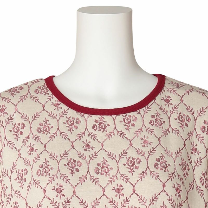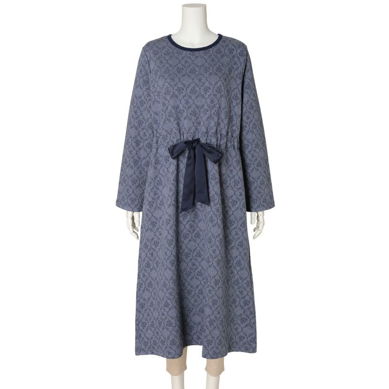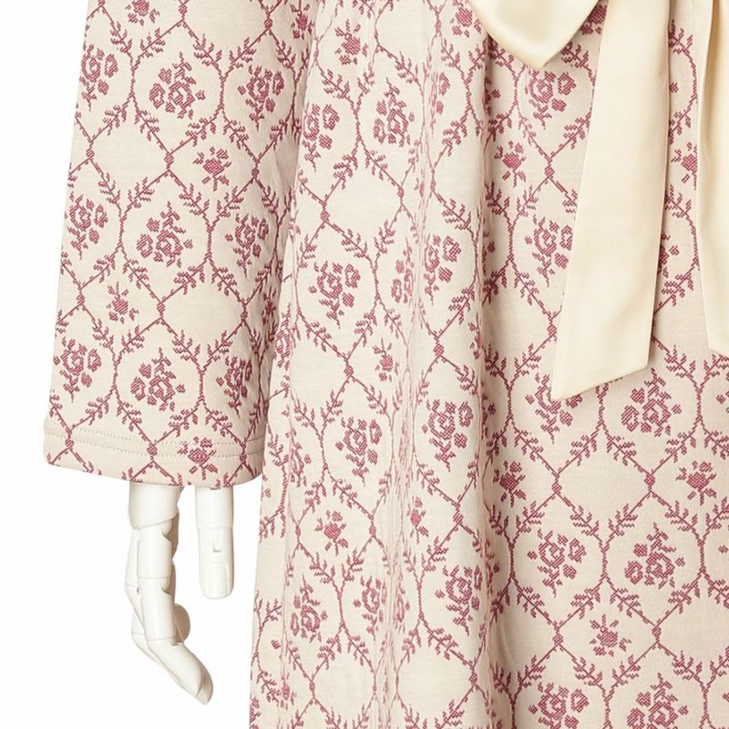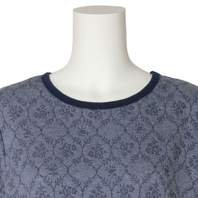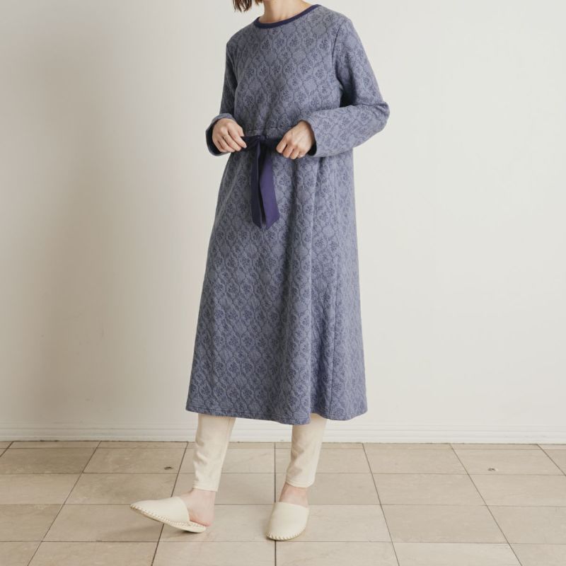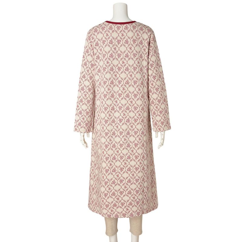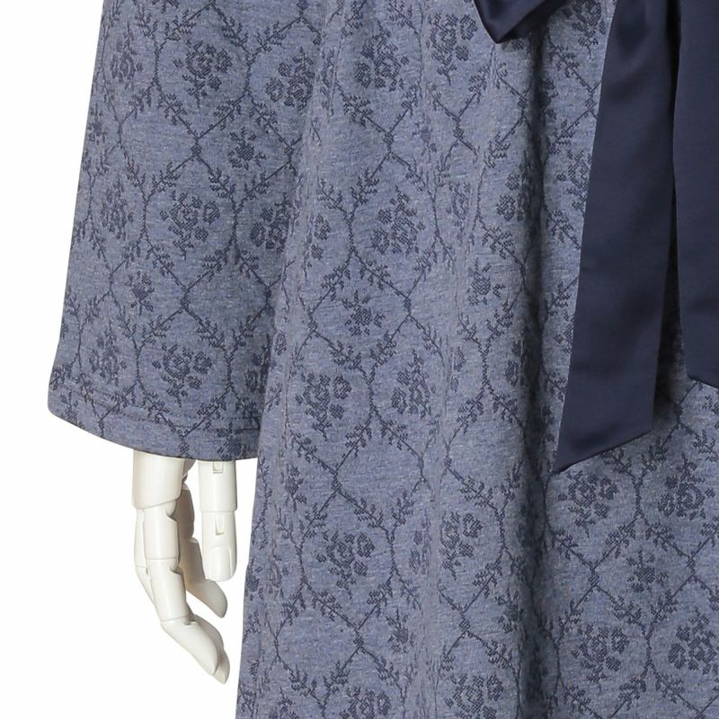 キルトジャカードはあたたかいと毎年人気の綿防寒素材。綿100%の生地の間にポリエステルの中糸を挟んでいるため柔らかくふっくらとしてあたたか。今シーズンはダマスク調の花柄が優雅な印象。華やかなアイボリーとシックなネイビーの2色展開。
