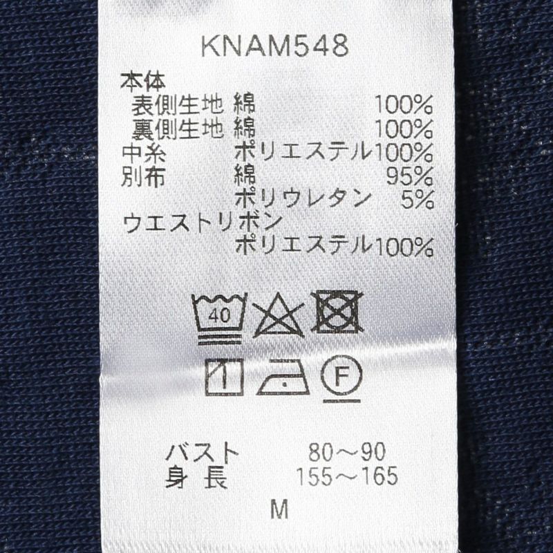 - 本体:表側生地 綿100% 裏側生地 綿100% 中糸 ポリエステル100% 別布:綿95% ポリウレタン5% ウエストリボン ポリエステル100% スパッツ 綿92% ポリエステル8%