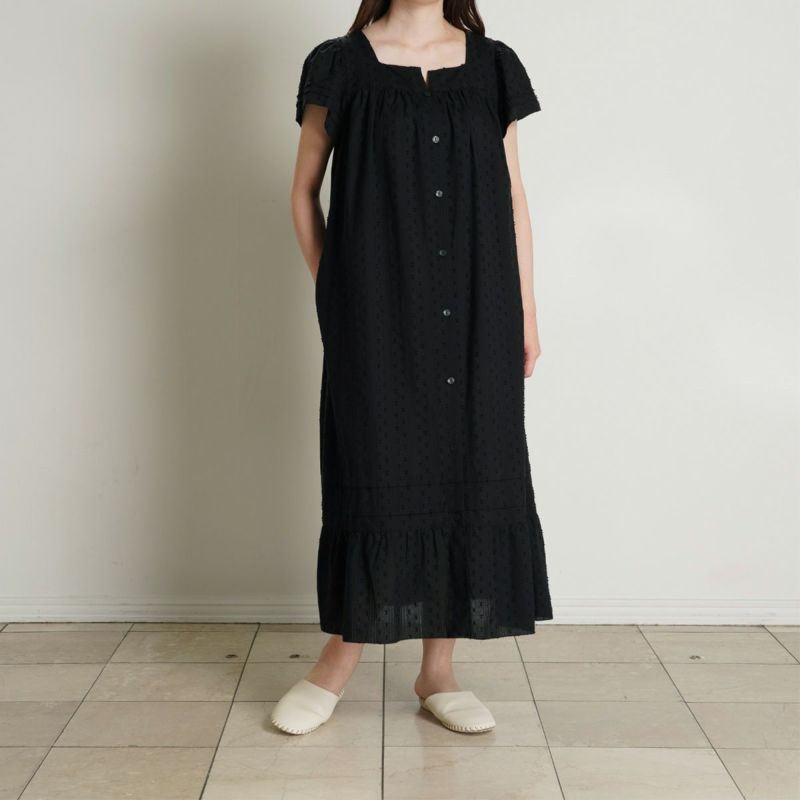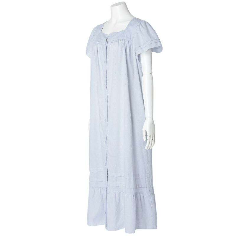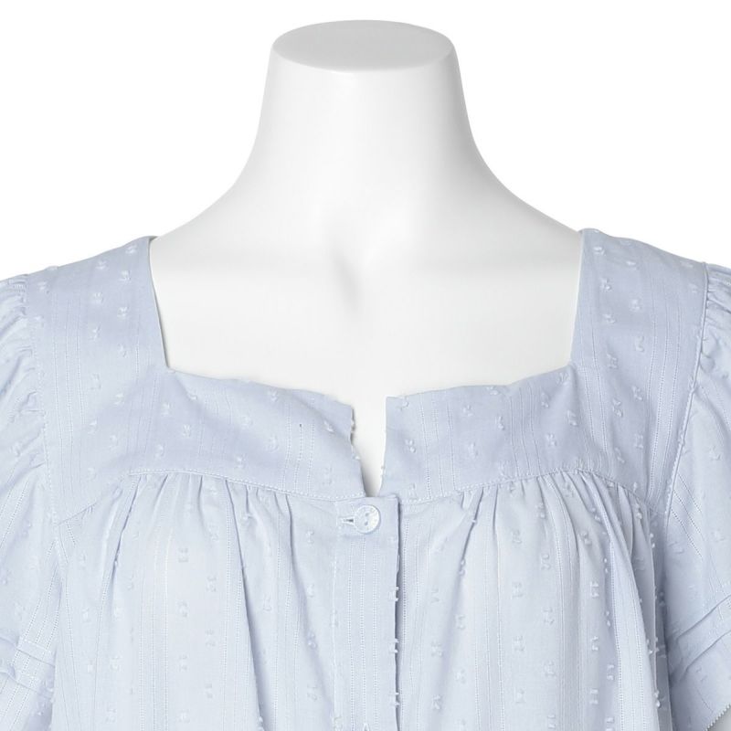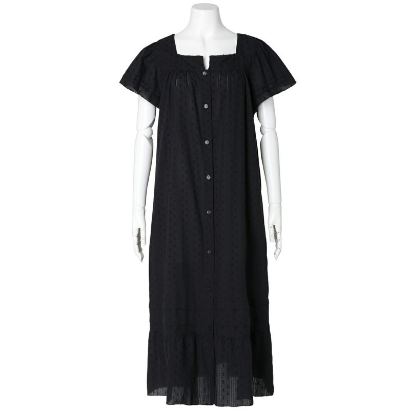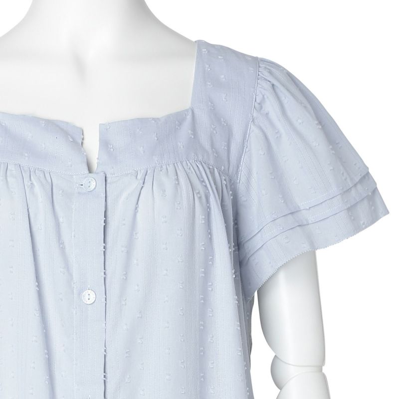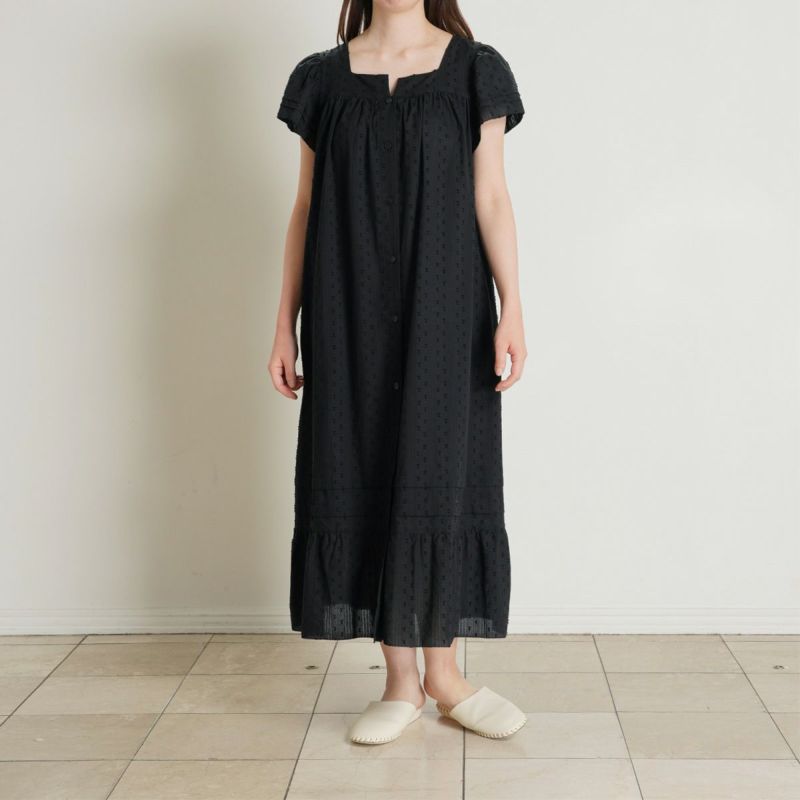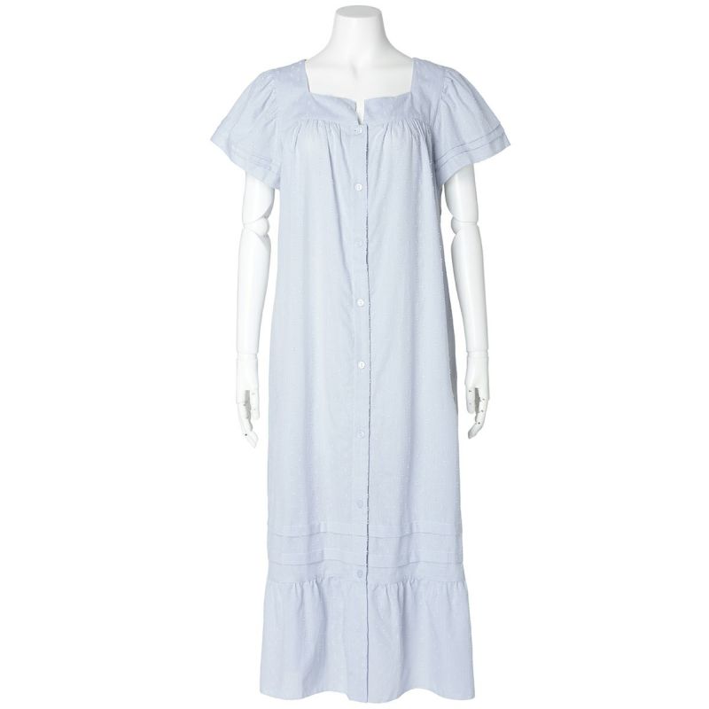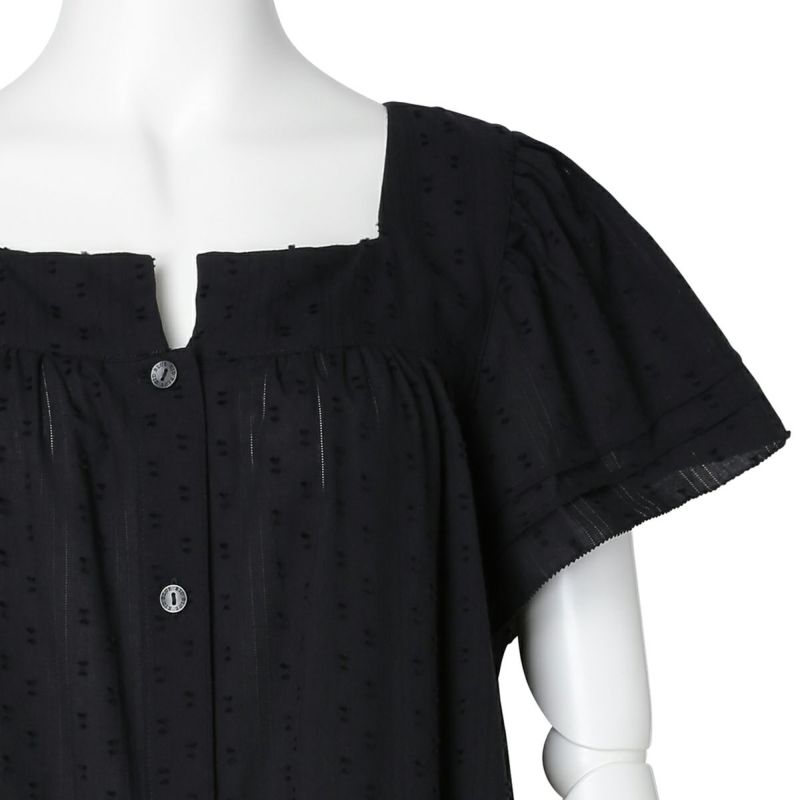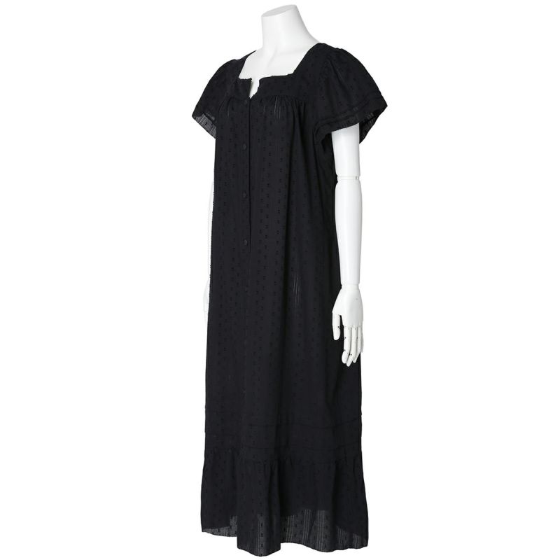 半袖ナイティは、クラシカルなスクエアネック仕立てでデコルテをきれいに見せつつ、キーネック風デザインで甘すぎない大人の雰囲気に。裾や袖口にはピコカット仕上げを施し、さりげない可憐さをプラス。フレアの袖やティアードでよりかわいらしく。ゆったりしたシルエットで体型をカバーしながら、快適な着心地を楽しめます。便利なサイドポケット付き。